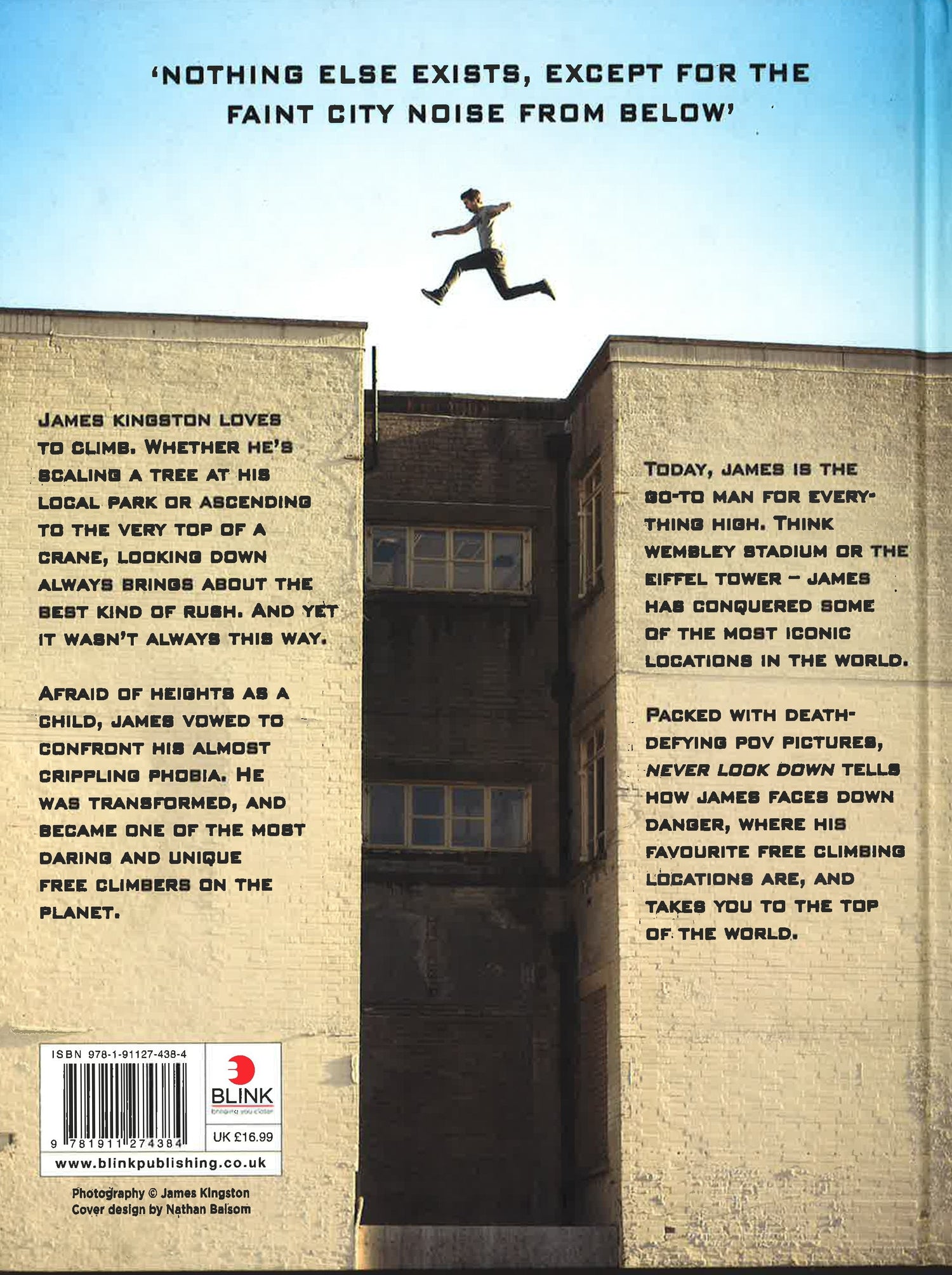 James Kingston loves to climb. Whether he's scaling a tree at his local park or ascending to the very top of a crane, looking down always brings about the best kind of rush. And yet it wasn't always this way. Afraid of heights as a child, James vowed to confront an almost crippling phobia. He was transformed, and became one of the most daring and unique free climbers on the planet. Today, James is the go-to man for everything HIGH. Think Wembley Stadium or the Eiffel Tower - James has conquered some of the most iconic locations in the world. Packed with death-defying POV pictures, Never Look Down tells how James faces down danger, where his favourite free climbing locations are, and takes you to the top of the world.