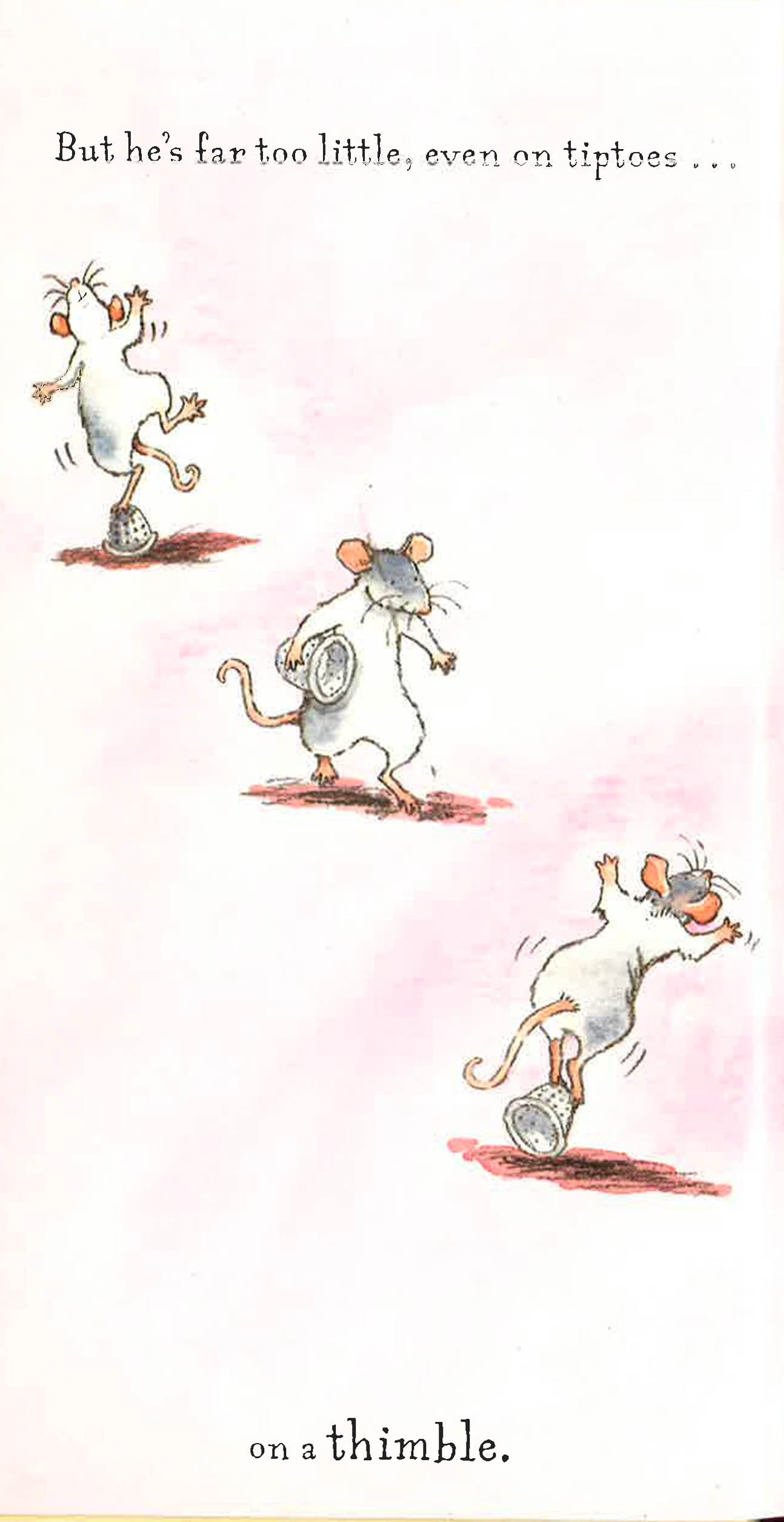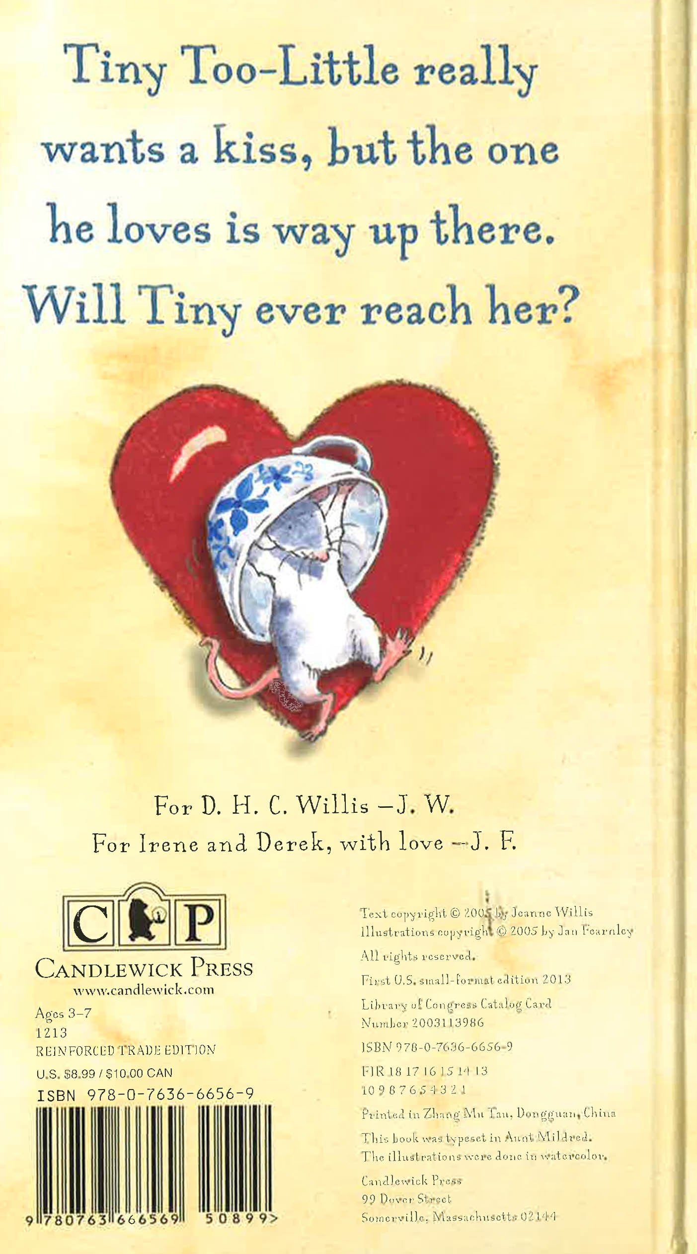 Tiny Too-Little loves someone who's very, very tall, and Tiny wants a kiss. What if he stands on his tiptoes on top of a thimble? What if he stands on his tiptoes on top of a matchbox on top of a thimble? Clever cut-away pages show Tiny's precarious pile growing higher and higher, while the object of his affection stays just out of reach. When the teetering stack finally falls with a crash, will his hopes be dashed? How can a tiny mouse get the kiss he needs?