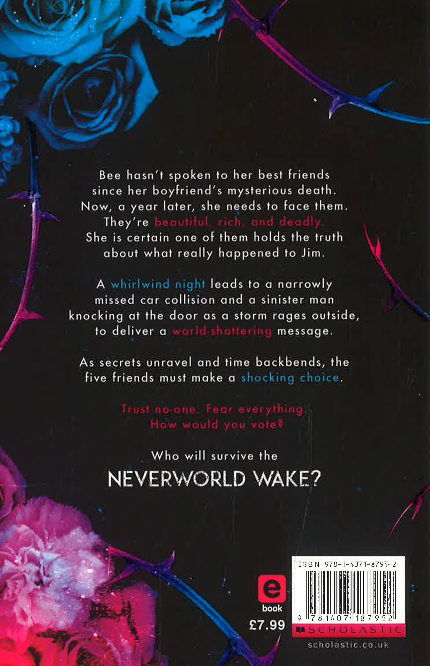 Five friends. Only one can survive the NEVERWORLD WAKE. How would you choose? A compulsive, read-in-one-sitting suspense novel for fans of One Of Us Is Lying and The Hazel Wood. Trust no-one. Fear everything. Five friends - the beautiful elite at their exclusive prep school - reunite a year after graduation. After a night out, they narrowly avoid a collision with a car on a deserted road. Back at the mansion belonging to one of the girls, a storm rages and a mysterious man knocks on the door, announcing something world-shattering. The friends must make a choice: one of them will live, and the rest will die. And the decision must be unanimous. So begins the Neverworld Wake. The nightmare. The nothingness. Time backbends and they are fated to repeat that day, but fears are now physical and memories come alive in horrifying ways. How will they vote? And will they be able to escape the Neverworld?
