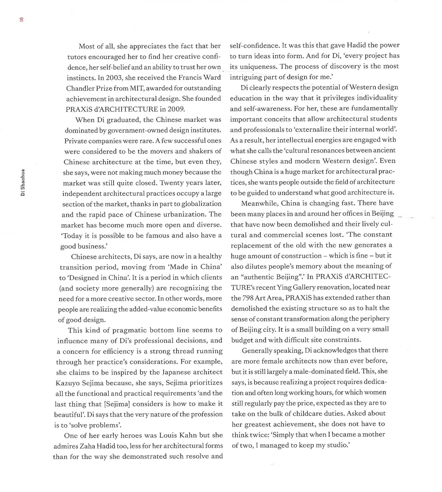 Over the past decade, China’s new generation of female architects have proven themselves to be talented, confident, innovative, and successful on the world stage. Engaging with traditions and international trends, as well as posing entirely new architectural ideas, their projects reveal China to be a place full of creative possibility.