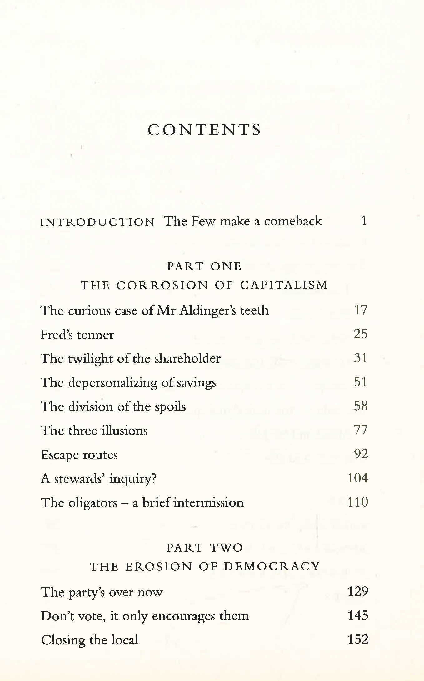 This was supposed to be the era when democracy came into its own, but instead power and wealth in Britain have slowly been consolidated the hands of a small elite, while the rest of the country struggles financially and switches off politically. We are now ruled by a gang of fat-cats with fingers in every pie who squabble for power among themselves while growing richer. Bored with watching corrupt politicians jockeying for power, ordinary Britons are feeling disconnected from politics and increasingly cynical about the back-scratching relationship between politicians and big business. The New Fewshows us what has led to this point, and asks the critical questions: whyhas Britain become a more unequal society over the past thirty years? Whyhave the banks been bailed out with taxpayers' money, while bankers are still receiving huge bonuses? Why have those responsible not been held accountable for the financial crash? Why has power in Britain become so concentrated in the hands of corrupt politicians who have been exposed cheating their constituents in the expenses scandal? Despite this bleak diagnosis, there are solutions to the rise of the new ruling class in the modern West. The New Few sets out some of the ways in which we can restore our democracy, bringing back real accountability to British business and fairness to our society.