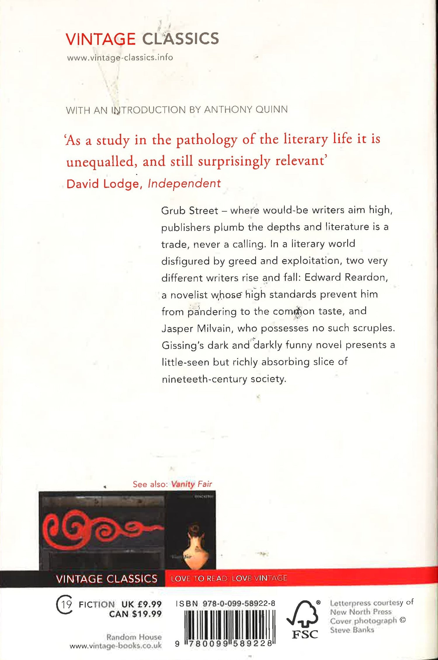 George Gissing's best-known novel shows us the literary underbelly of Victorian England, and the writers striving to forge their reputations in 'the street of no shame'. 'As a study in the pathology of the literary life it is unequalled, and still surprisingly relevant' David Lodge, IndependentGrub Street - where would-be writers aim high, publishers plumb the depths and literature is a trade, never a calling. In a literary world disfigured by greed and explotation, two very different writers rise and fall: Edward Reardon, a novelist whose high standards prevent him from pandering to the common taste, and Jasper Milvain, who possesses no such scruples. Gissing's dark and darkly funny novel presents a little-seen but richly absorbing slice of nineteeth-century society. WITH AN INTRODUCTION BY ANTHONY QUINN