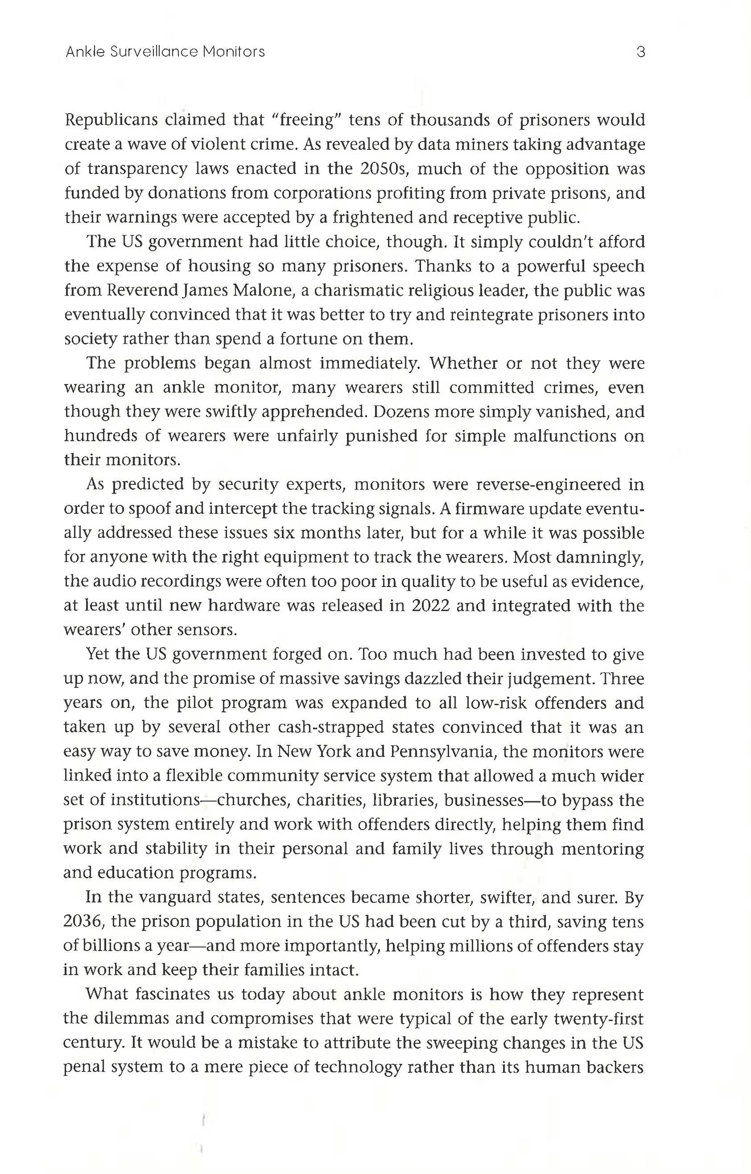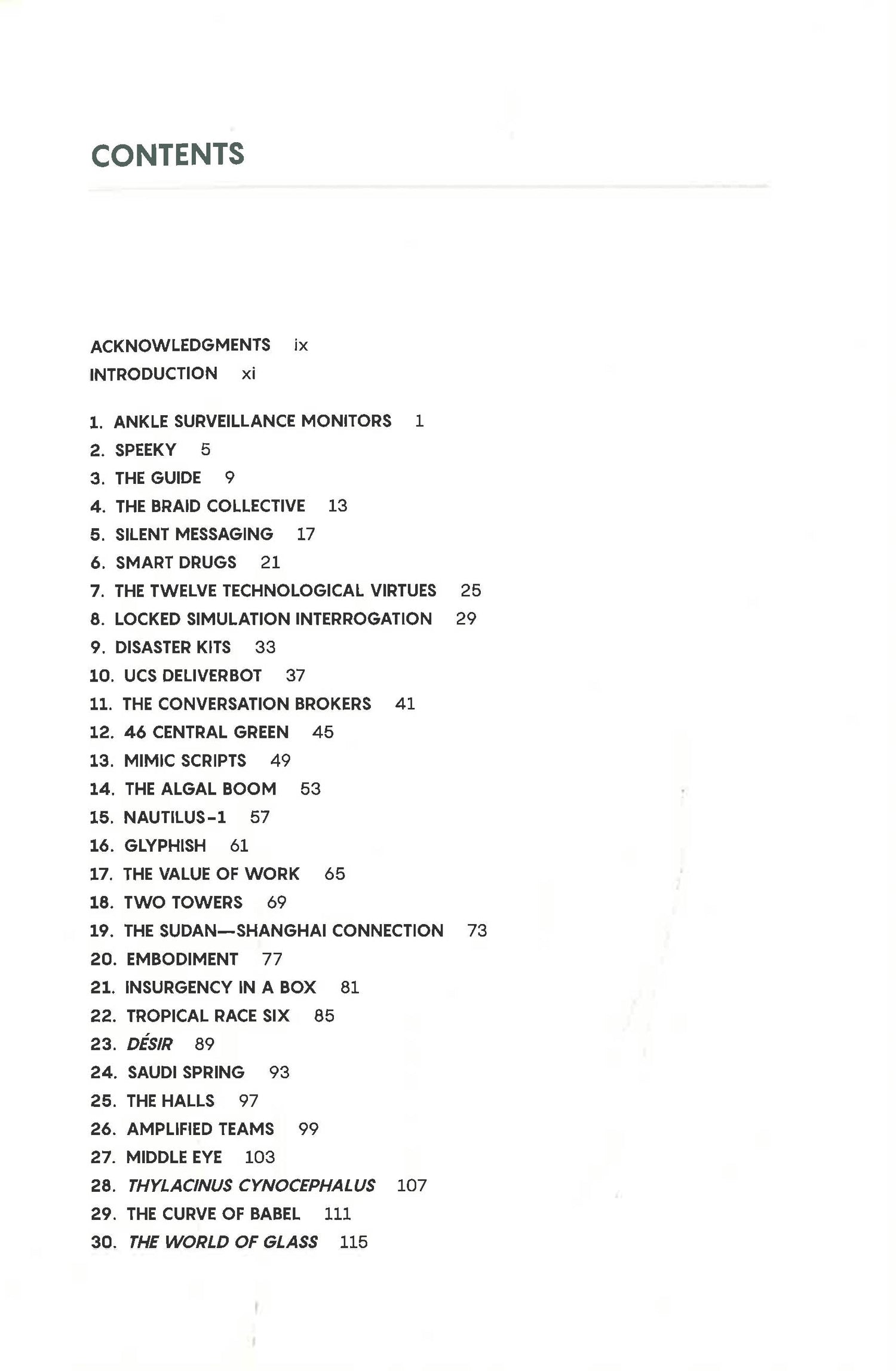 Many of these things are just an update or two away: improved ankle monitors, for example, and deliverbots. Others may be the logical conclusions of current trends--"downvote" networks that identify and erase undesirables, and Glyphish, an emoticon-based language that supersedes the written word. More benign are Braid Collective, which provides financial support for artists, and Rechartered Cities, which invites immigrants to revitalize urban areas hollowed out by changing demographics. With this engaging and ingenious work, Hon leads the way into an imagined future while offering readers a new perspective on the present.