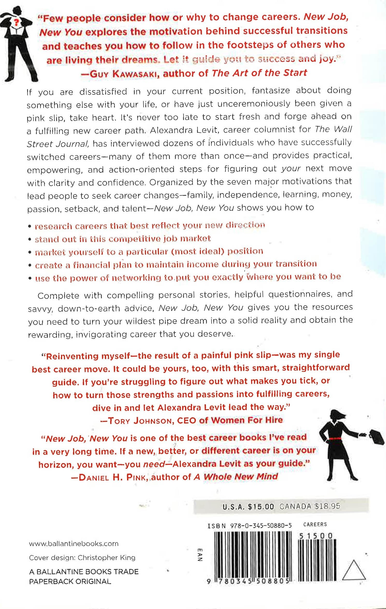 If you're dissatisfied in your current position, fantasize about doing something else with your life, or have just unceremoniously been given a pink slip, take heart. It's never too late to start fresh and forge ahead on a fulfilling new career path. Alexandra Levit, career columnist for The Wall Street Journal, has interviewed dozens of individuals who have successfully switched careers--many of them more than once--and provides practical, empowering, and action-oriented steps for figuring out your next move with clarity and confidence. Organized by the seven major motivations that lead people to seek career changes--family, independence, learning, money, passion, setback, and talent--New Job, New You shows you how to - research careers that best reflect your new direction