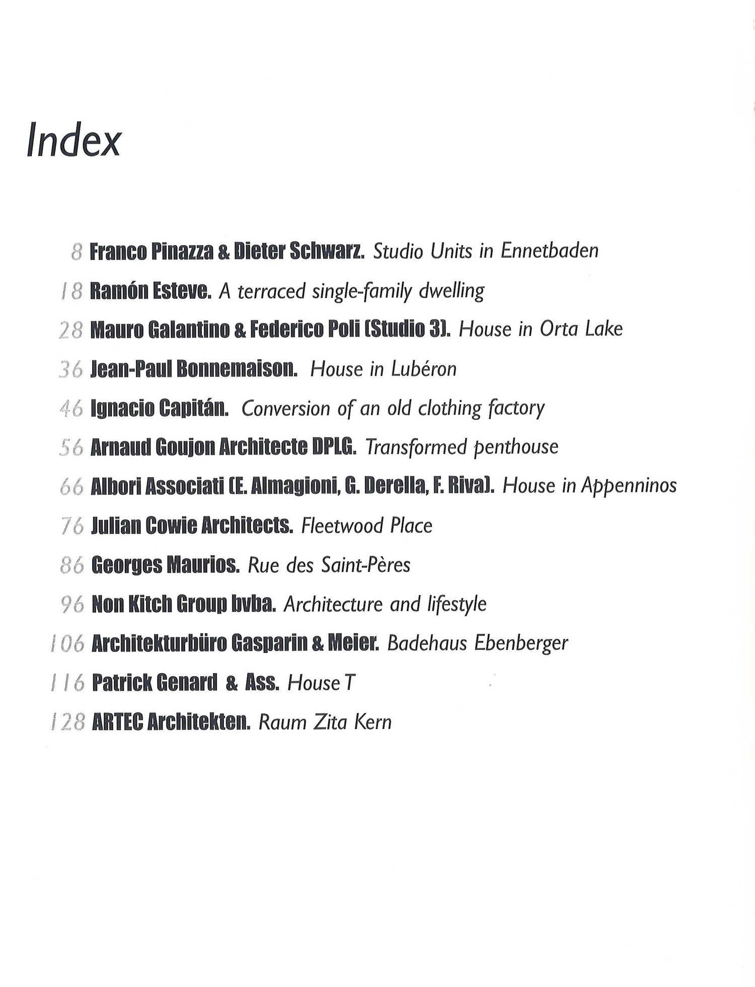 The wide array of designs presented in this volume offers a wide and varied vision of the latest trends in renovating buildings. Reputed architects suggest ingenious solutions for giving old structures a fresh, renewed look and for creating effective spaces for domestic use. Each project includes a detailed explanation through the use of plans, sketches, notes, construction explanations, materials and photographs.