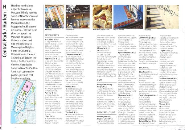 Details of more than 100 recommended sights and some 170 addresses: restaurants, cafes, theatres, music venues, shops, markets etc., organised by area.