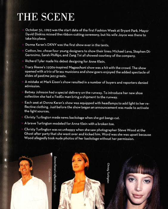 Capturing the most exciting moments, trends, and people from seventeen years under the tents of Bryant Park, New York Fashion Week gives industry professionals, style savvy consumers, and pop culture and celebrity fans an essential piece of fashion history.