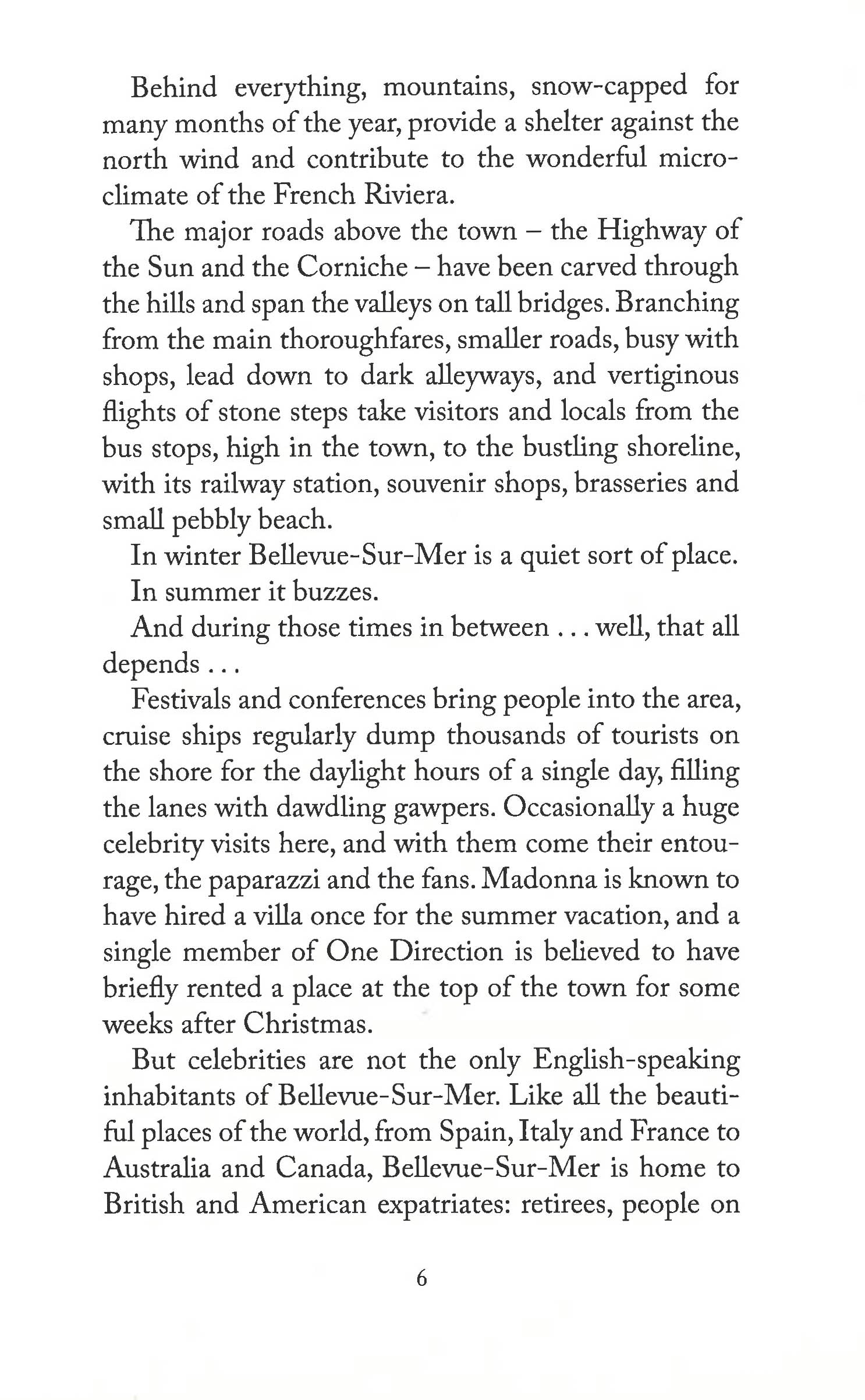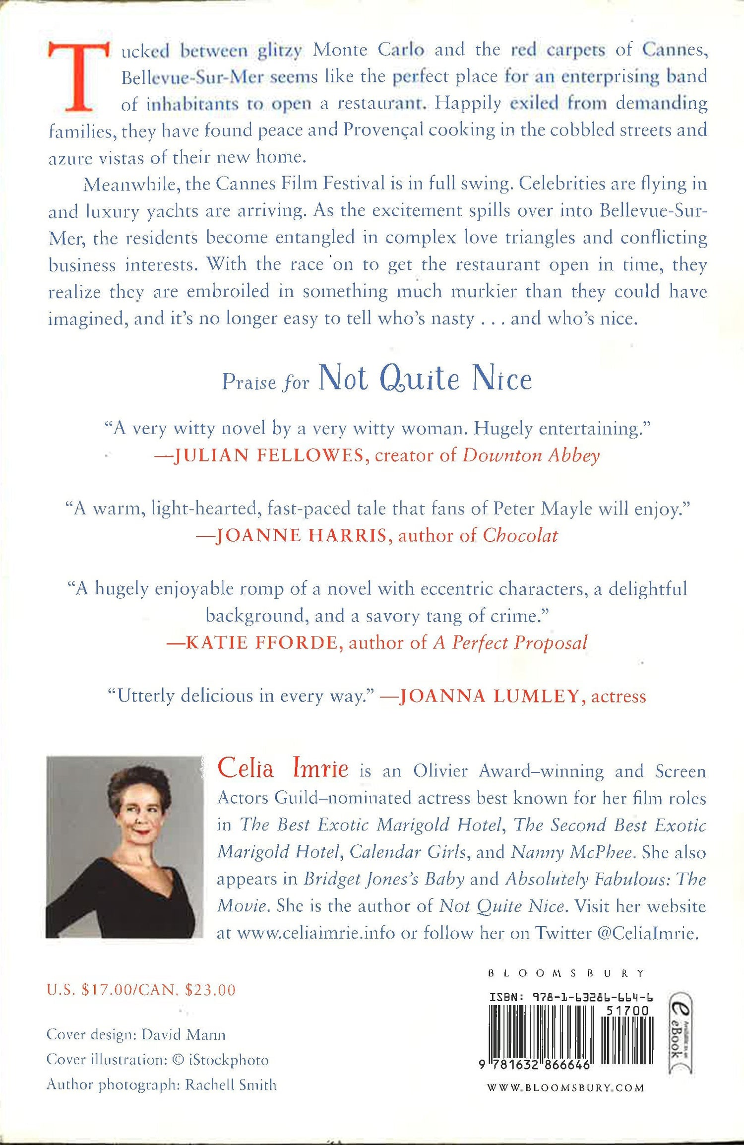 Witty and enchanting, the second novel from the well-loved actress and author of Not Quite Nicefollows the hilarious exploits of retired expats in the South of France. Somewhere on the French Riviera, tucked between glitzy Monte Carlo and Cannes' red carpets, lies the pretty town of Bellevue-Sur-Mer. Sheltered from the glittering melee, it is home to many an expat--including an enterprising team who plan to open a new restaurant. Snapping up a local property and throwing themselves into preparations, Theresa, Carol, William and Benjamin's plans are proceeding unnervingly well. But when Theresa encounters a mysterious intruder, she begins to wonder what secrets the building is concealing. Meanwhile Sally, an actress who gave up the stage to live in quiet anonymity, has decided not to be involved. The famous Cannes Film Festival is on and she is far too busy entertaining unexpected visitors from her past, and an intriguingly handsome Russian. As the razzmatazz of the festival begins to spill over into Bellevue-Sur-Mer, its inhabitants become entangled in complex love triangles and conflicting business interests. With the race on to get the restaurant open in time, the gang find themselves knee-deep in skulduggery, and realize they can no longer tell who's nasty . . . and who's nice. *this book may have remainder mark*