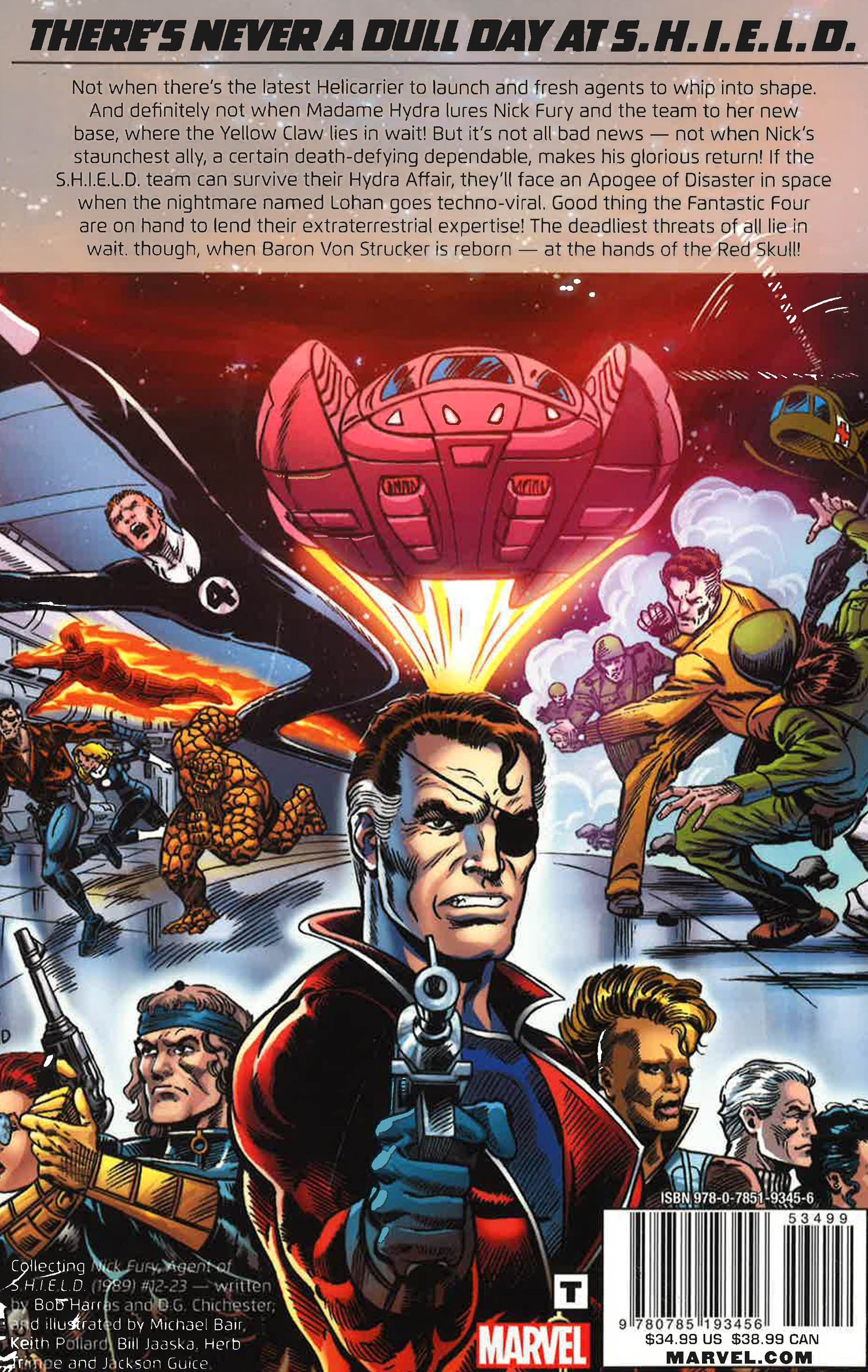 There's never a dull day at S.H.I.E.L.D. Not when there's the latest Helicarrier to launch and fresh agents to whip into shape. And definitely not when Madame Hydra lures Nick Fury and the team to her new base, where the Yellow Claw lies in wait! But it's not all bad news - not when Nick's staunchest ally, a certain death defying dependable, makes his glorious return! If the S.H.I.E.L.D. team can survive their Hydra Affair, they'll face an Apogee of Disaster in space when the nightmare named Lohan goes techno-viral. Good thing the Fantastic Four are on hand to lend their extraterrestrial expertise! The deadliest threats of all lie in wait though, when Baron Von Strucker is reborn - at the hands of the Red Skull!