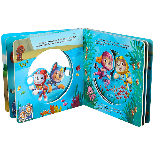 Join the PAW Patrol as they head on an underwater adventure to get their Sea Patrol badges! With peek-through windows, rotating characters, and die-cut surprises, this book is perfect for keeping little fingers busy. Set off on a scuba-diving rescue and get ready to spin, swim, and make a splash!