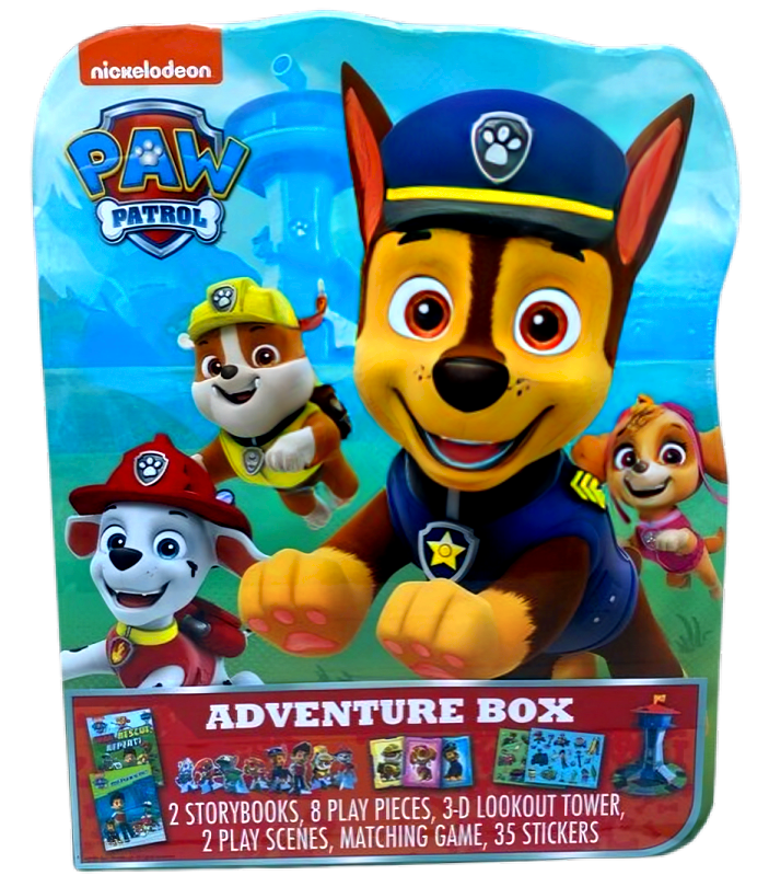 PAW Patrol: Get ready to save the day with Adventure Bay’s favourite pups in PAW Patrol adventure Box! After reading the two storybooks, kids can build their very own Lookout Tower, then transform the box into an interactive play scene with press-out figures and stickers. Use the puptastic memory matching game for even more PAW Patrol fun! PAW Patrol adventure box includes: 2 storybooks, 8 play pieces, 3D lookout tower, 2 play scenes, matching game, 35 stickers