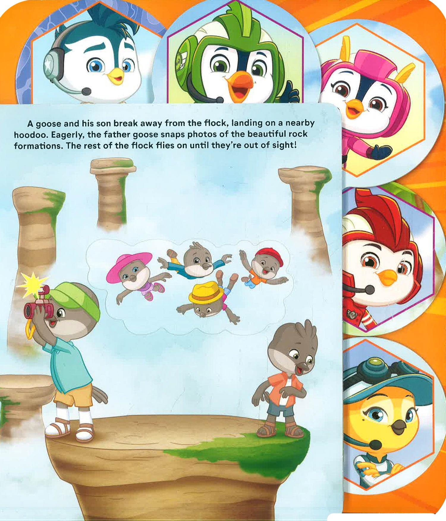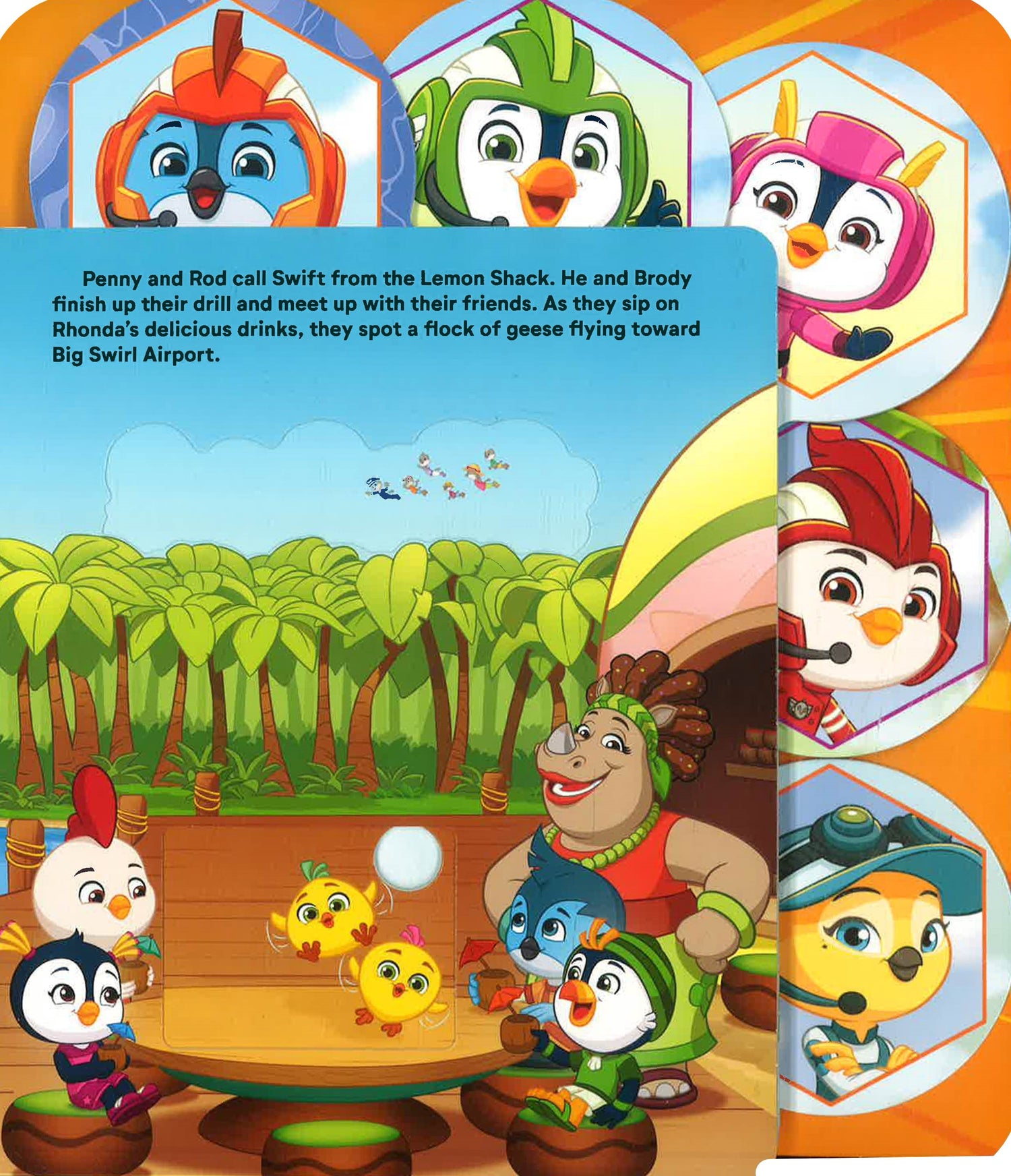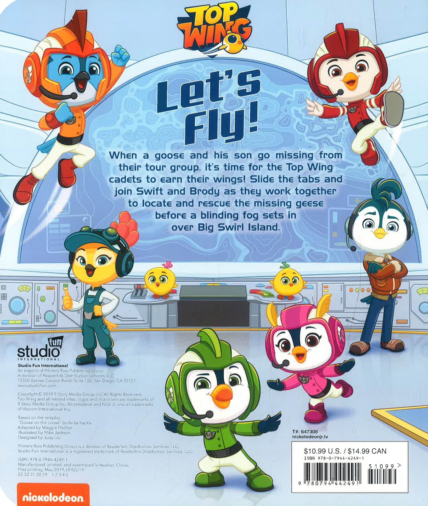 It’s time for the Top Wing team to earn their wings! When a goose and his son go missing from their tour group, it’s up to the Top Wing cadets to find them. Slide the tabs in Nickelodeon Top Wing Let’s Fly! and join Swift and Brody as they work together to locate the missing geese and lead them to safety before a blinding fog sets in over Big Swirl Island!