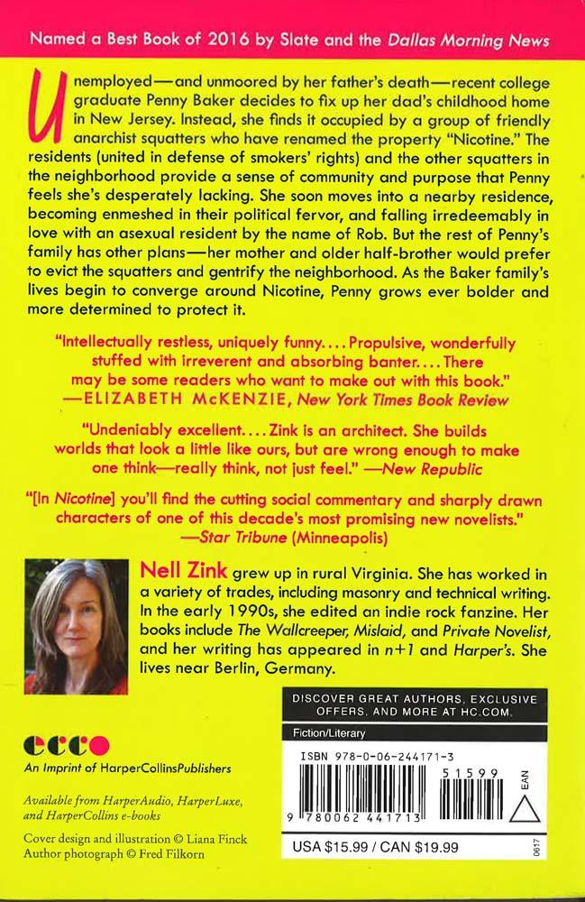 Recent business school graduate Penny Baker has rebelled against her family her whole life - by being the conventional one. Her mother, Amalia, was a member of an Amazonian tribe called the Kogi; her much older father, Norm, long ago attained cult-like deity status among a certain group of aging hippies while operating a ‘healing center’ in New Jersey. And she’s never felt particularly close to her much-older half-brothers from Norm’s previous marriage - one wickedly charming and obscenely rich (but mostly just wicked), one a photographer on a distant tropical island.But all that changes when her father dies, and Penny inherits his childhood home in New Jersey. She goes to investigate the property and finds it occupied by a group of friendly and charming anarchist squatters who have renamed the property Nicotine House. The residents of Nicotine House (defenders of smokers’ rights) possess the type of passion and fervor Penny feels she’s desperately lacking, and the other squatter houses in the neighborhood provide a sense of community she’s never felt before. Penny soon moves into a nearby residence, becoming enmeshed in the political fervor and commitment of her fellow squatters.As the Baker family’s lives begin to converge around the fate of the Nicotine House, Penny grows ever bolder and more desperate to protect it-and its residents-until a fateful night when a reckless confrontation between her old family and her new one changes everything.