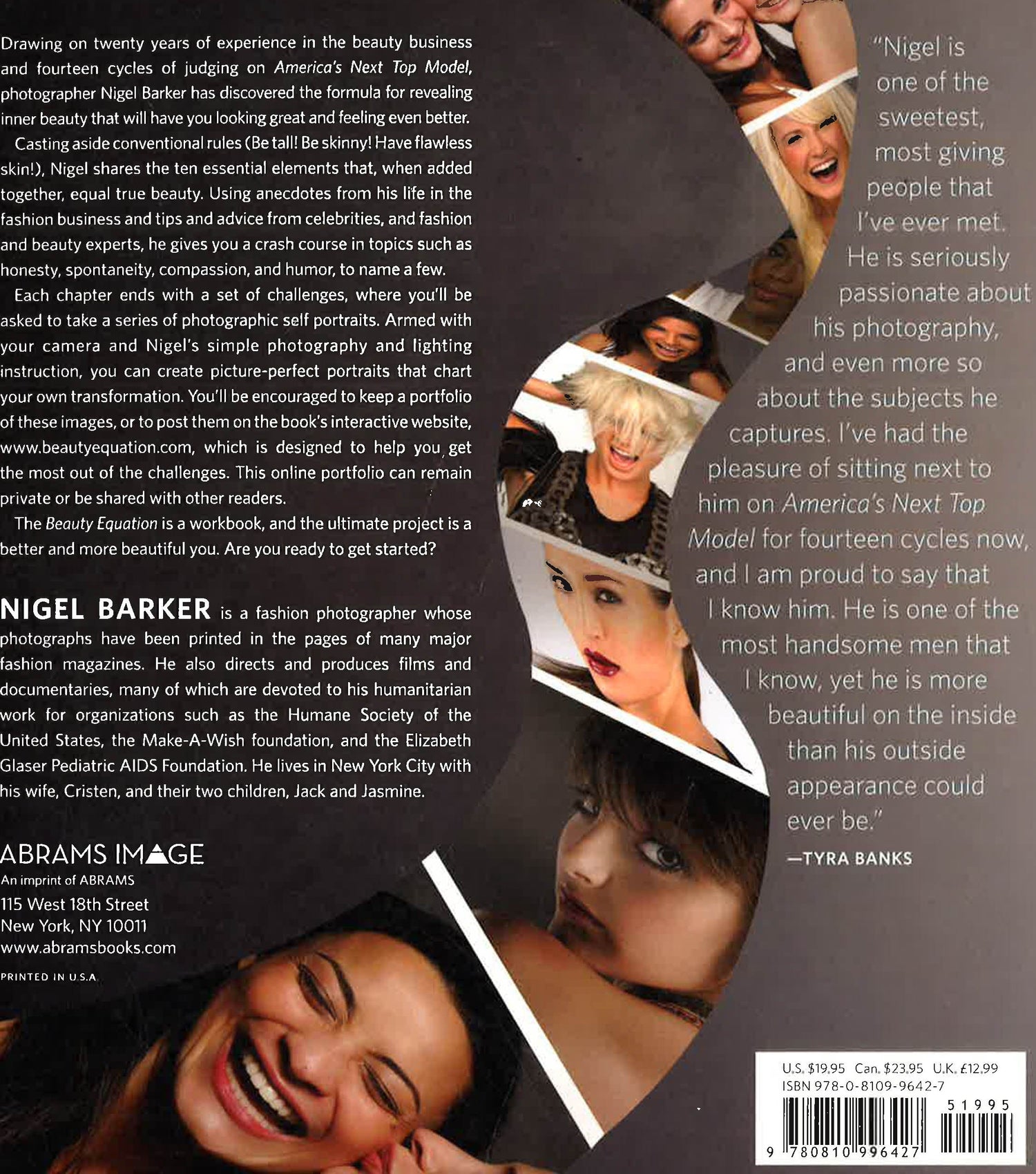Drawing on 20 years of experience in the beauty business and 14 seasons of judging onAmericas Next Top Model, photographer Nigel Barker has discovered the formula for revealing inner beauty that will have readers looking great and feeling even better. Casting aside conventional rules (be tall! be skinny! have flawless skin!) Nigel shares the elements that, when added together, equal true beauty: humor, honesty, and confidence, to name a few. Armed with their own cameras, readers are guided through a series of self-portrait challenges. Along the way, Nigel shares tips and advice on fashion, style, hair, and make-up, showing readers how to turn perceived negatives into positives, celebrate their uniqueness, and be their personal best.