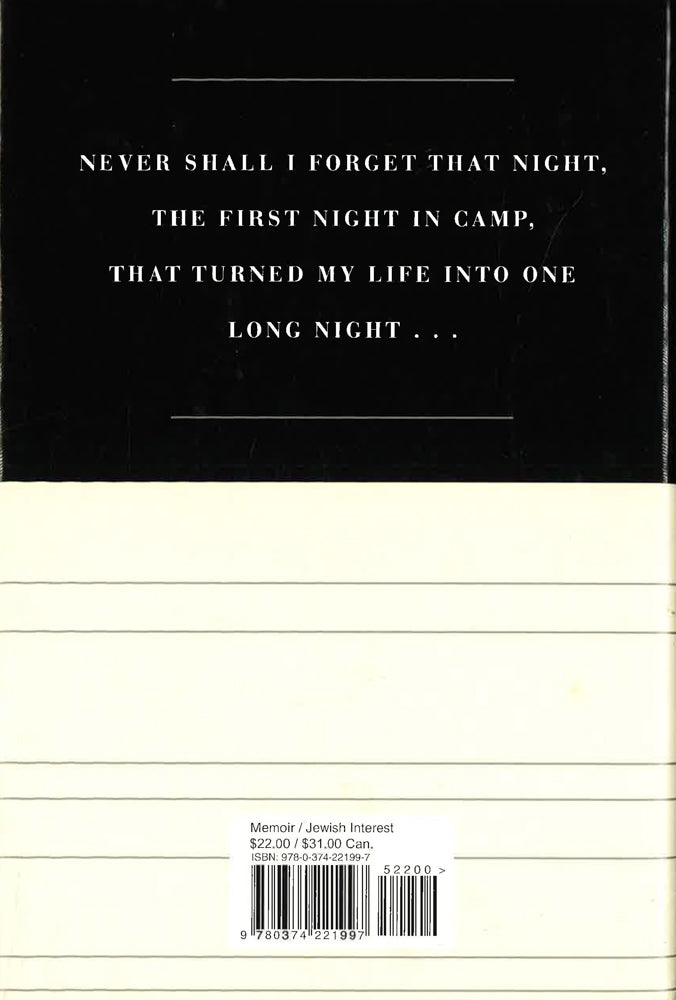 A memorial edition of Elie Wiesel's seminal memoir of surviving the Nazi death camps, with tributes by President Obama and Samantha Power When Elie Wiesel died in July 2016, the White House issued a memorial statement in which President Barack Obama called him "the conscience of the world." The whole of the president's eloquent tribute serves as a foreword to this memorial edition of Night. "Like millions of admirers, I first came to know Elie through his account of the horror he endured during the Holocaust simply because he was Jewish," wrote the president. In 1986, when Wiesel received the Nobel Peace Prize, the Norwegian Nobel Committee wrote, "Elie Wiesel was rescued from the ashes of Auschwitz after storm and fire had ravaged his life. In time he realized that his life could have purpose: that he was to be a witness, the one who would pass on the account of what had happened so that the dead would not have died in vain and so the living could learn." Night, which has sold millions of copies around the world, is the very embodiment of that conviction. It is written in simple, understated language, yet it is emotionally devastating, never to be forgotten. Born in the town of Sighet, Transylvania, Wiesel was a teenager when he and his family were deported to Auschwitz and then Buchenwald. Night is the shattering record of his memories of the death of his mother, father, and little sister, Tsipora; the death of his own innocence; and his despair as a deeply observant Jew confronting the absolute evil of man. "Never shall I forget that night, the first night in camp, that turned my life into one long night," writes Wiesel. "Never shall I forget . . . even were I condemned to live as long as God Himself." These words are etched into the wall of the Holocaust Memorial Museum in Washington. Far more than a chronicle of the sadistic realm of the camps, Night also addresses many of the philosophical and personal questions implicit in any serious consideration of the Holocaust. In addition to tributes from President Obama and Samantha Powers, this memorial edition of Night includes the unpublished text of a speech that Wiesel delivered before the United Nations General Assembly on the sixtieth anniversary of the liberation of Auschwitz, entitled "Will the World Ever Know." These remarks powerfully resonate with Night and with subsequent acts of genocide.