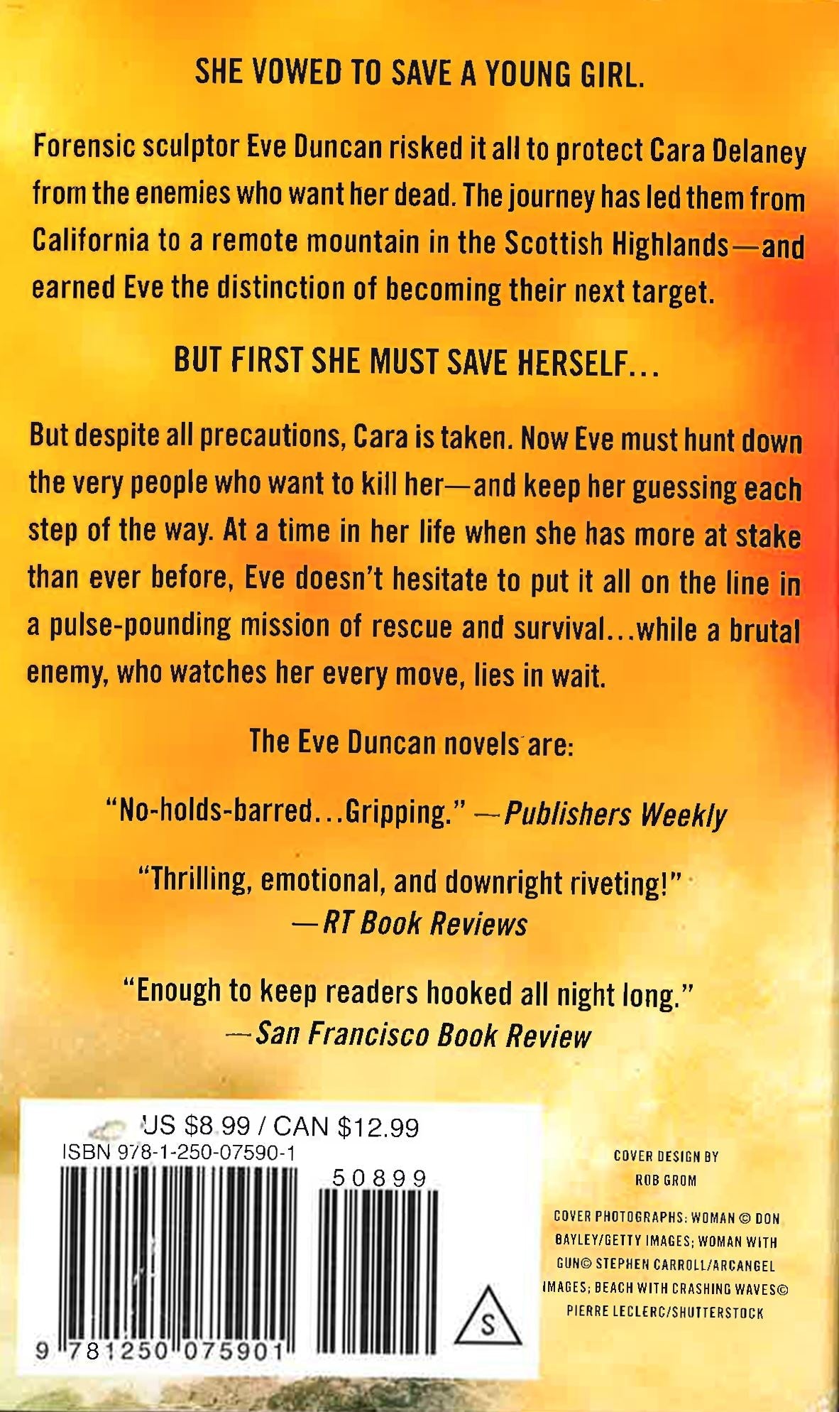 Forensic sculptor Eve Duncan risked it all to protect Cara Delaney from the enemies who want her dead. The journey has led them from California to a remote mountain in the Scottish Highlandsand earned Eve the distinction of becoming their next target.