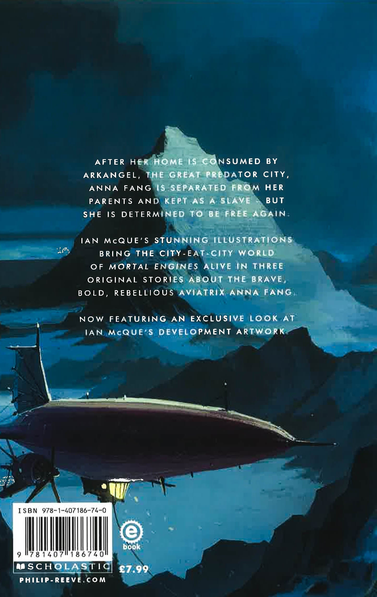Return to the world of Mortal Engines in this new book of three short stories about the rebellious young aviatrix, Anna Fang, illustrated by Ian McQue. A key character in the Mortal Engines book and film, this is your chance to learn more of her past. Night Flights includes Traction City, the 2011 World Book Day Book by Philip Reeve.Return to the world of Mortal Engines in this new book of three short stories about the rebellious young aviatrix, Anna Fang, illustrated by Ian McQue. A key character in the Mortal Engines book and film, this is your chance to learn more of her past. Night Flights includes Traction City, the 2011 World Book Day Book by Philip Reeve. In a dangerous future world where gigantic, motorised cities attack and devour each other, London hunts where no other predator dares. But Anna Fang - pilot, adventurer, spy - isn't afraid. The three stories show gripping, moving, exciting moments in Anna Fang's life: her childhood as a slave aboard the moving city Arkangel, a showdown against a robotic Stalker that is terrifyingly out of control and her free life as an intelligence agent for the Anti-Traction league that might not be quite as free as she hoped.