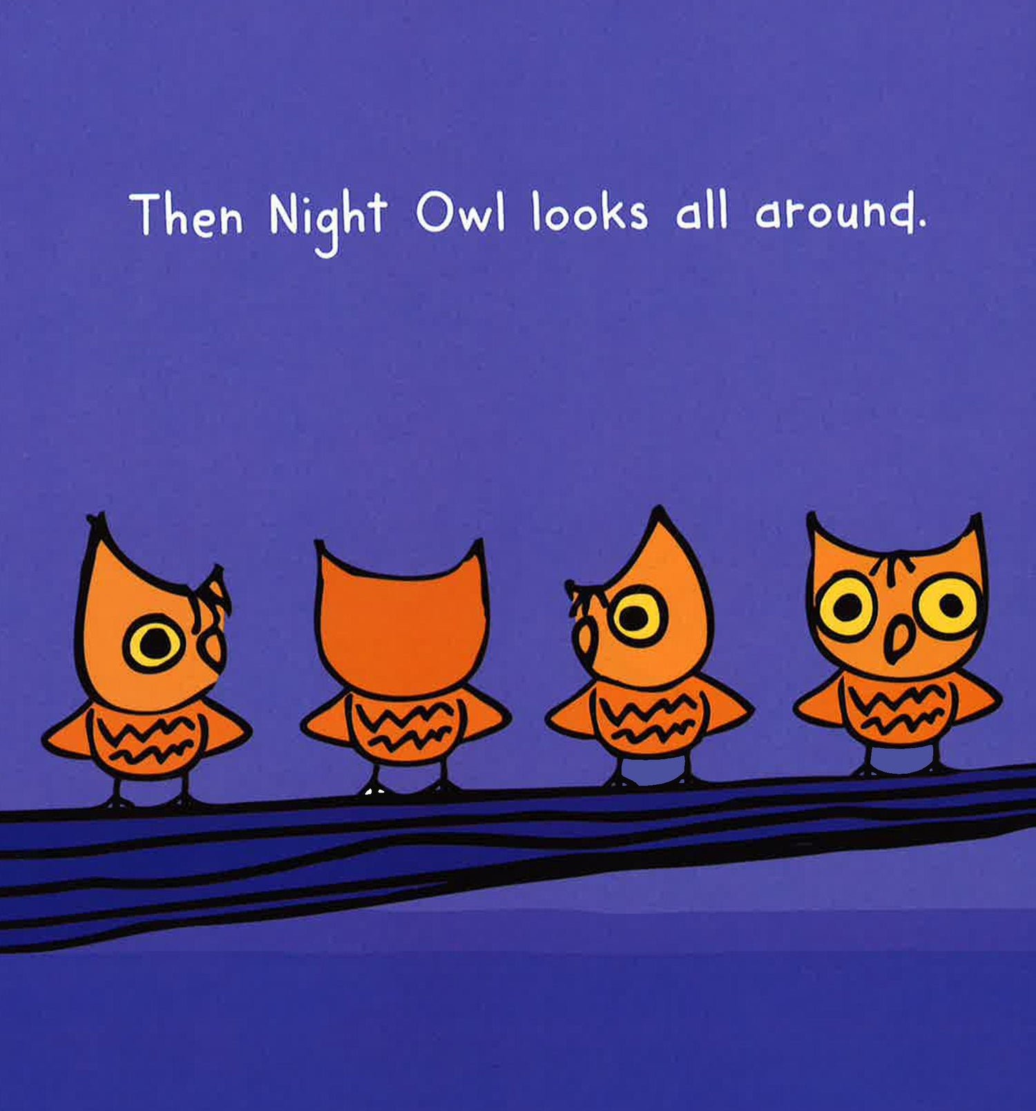 Night Owl loves the nighttime! He can see everything, but when he doesn't see Mommy Owl, he starts to listen . . . .