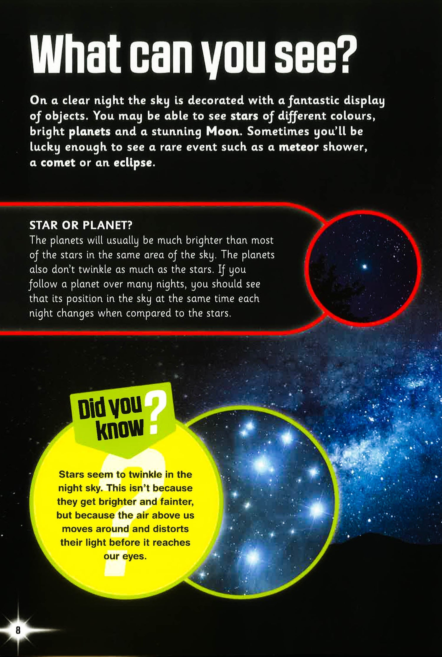 Get ready to explore the magical night sky. Find out everything there is to know about what you can spot in the sky, such as how explorers used constellations as a form of navigation. Also discover when is the best time to spot comets and why the Moon's appearance has changed over time. Night Sky Watcher includes everything from the Sun to the Moon, to the stars and planets. Symbols are used within the book to show what can be seen in the northern and southern hemispheres. This allows the reader to view exactly what they can see in the sky, regardless of their location.