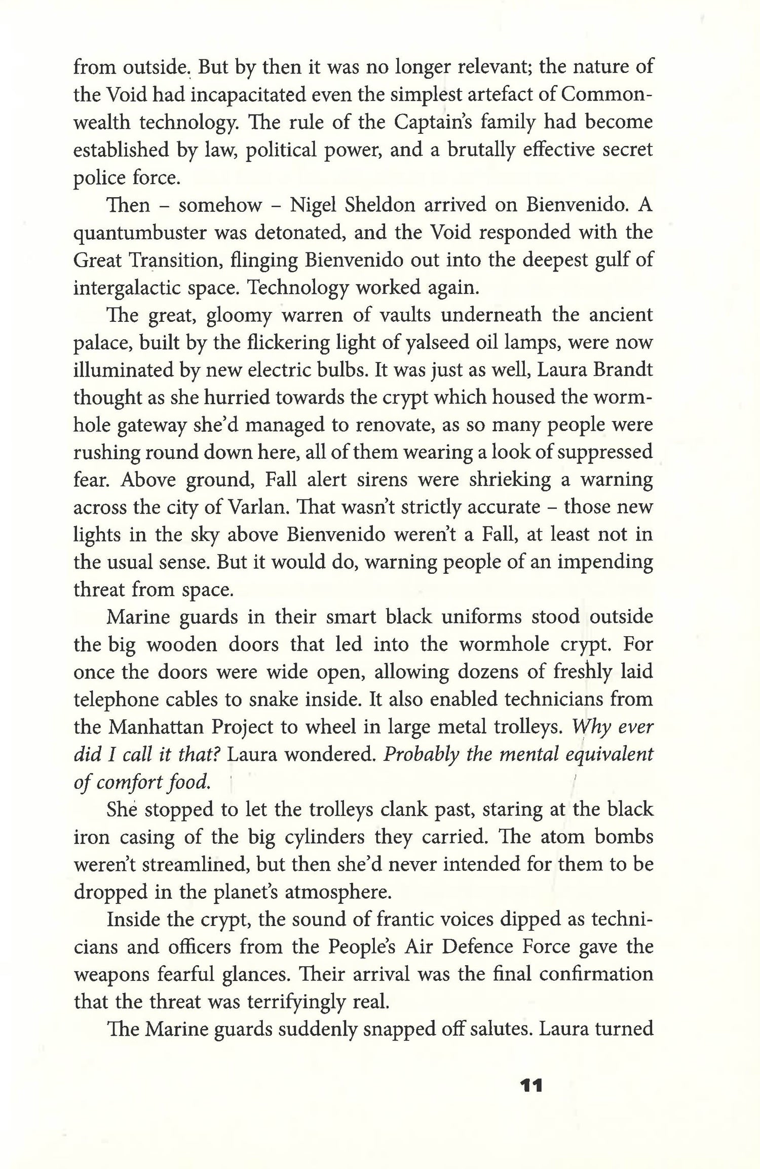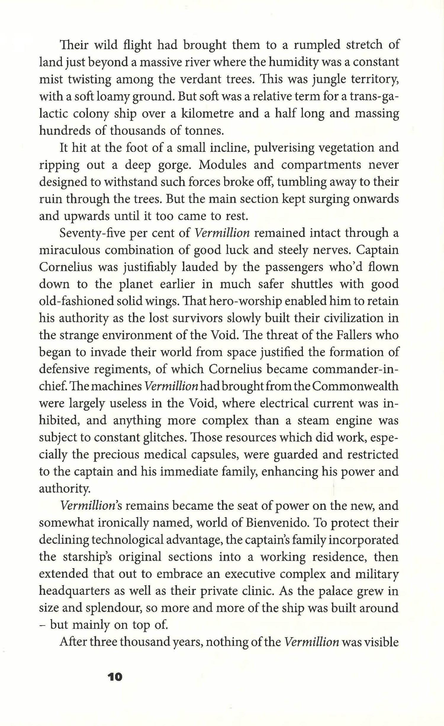 Following the astonishing The Abyss Beyond Dreams, Night Without Stars is the epic second and final part to Peter F. Hamilton's Chronicle of the Fallers. The planet Bienvenido is in crisis. It has finally escaped the Void, emerging into regular space. But it's millions of light-years from Commonwealth assistance, and humans are battling the Fallers for control of their world. This rapacious adversary, evolved to destroy all sentient life, has infiltrated every level of human society - hijacking unwilling bodies so its citizens fear their leaders, friends and family. A mysterious figure known as the Warrior Angel leads a desperate resistance. She's helped by forbidden Commonwealth technology, which gives her a crucial edge. But the government obstructs the Angel's efforts at every turn, blinded by prejudice and technophobia. As Fallers also prepare to attack from the skies, she might need to incite rebellion to fight this invasion. But the odds seem impossible. Then astronaut Ry Evine uncovers one last hope. On a mission against the enemy, his spacecraft damages an unidentified vessel. This crash-lands on the planet carrying unexpected cargo: a baby. This extraordinary Commonwealth child possesses knowledge that could save them all. But if the Fallers catch her, the people of Bienvenido will not survive.