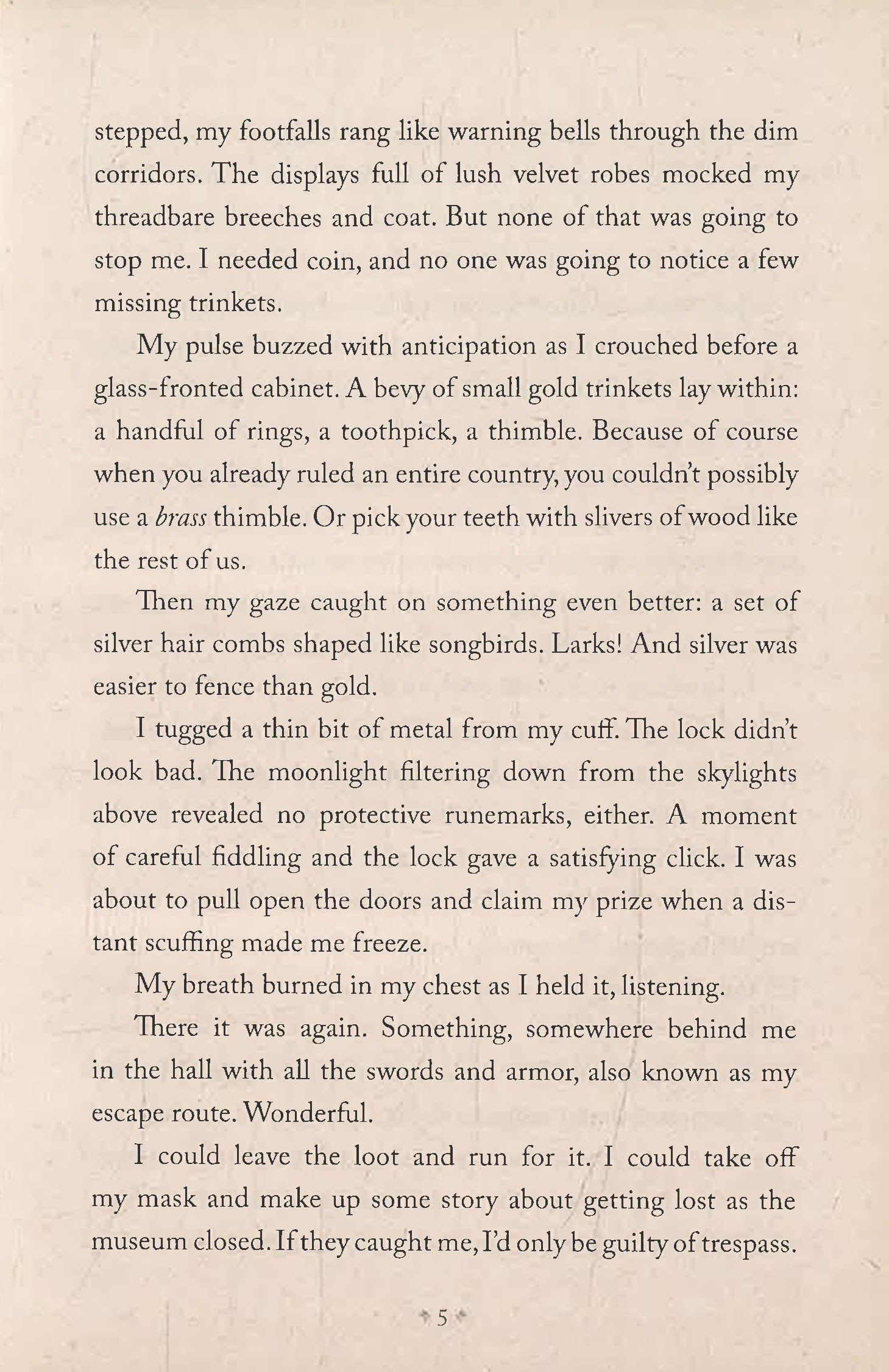 Twelve-year-old Lark is determined to escape her squalid life at Miss Starvenger’s boarding house, but she needs to find the coin to do it. Her grand scheme? To steal her fortune from the Royal Museum.