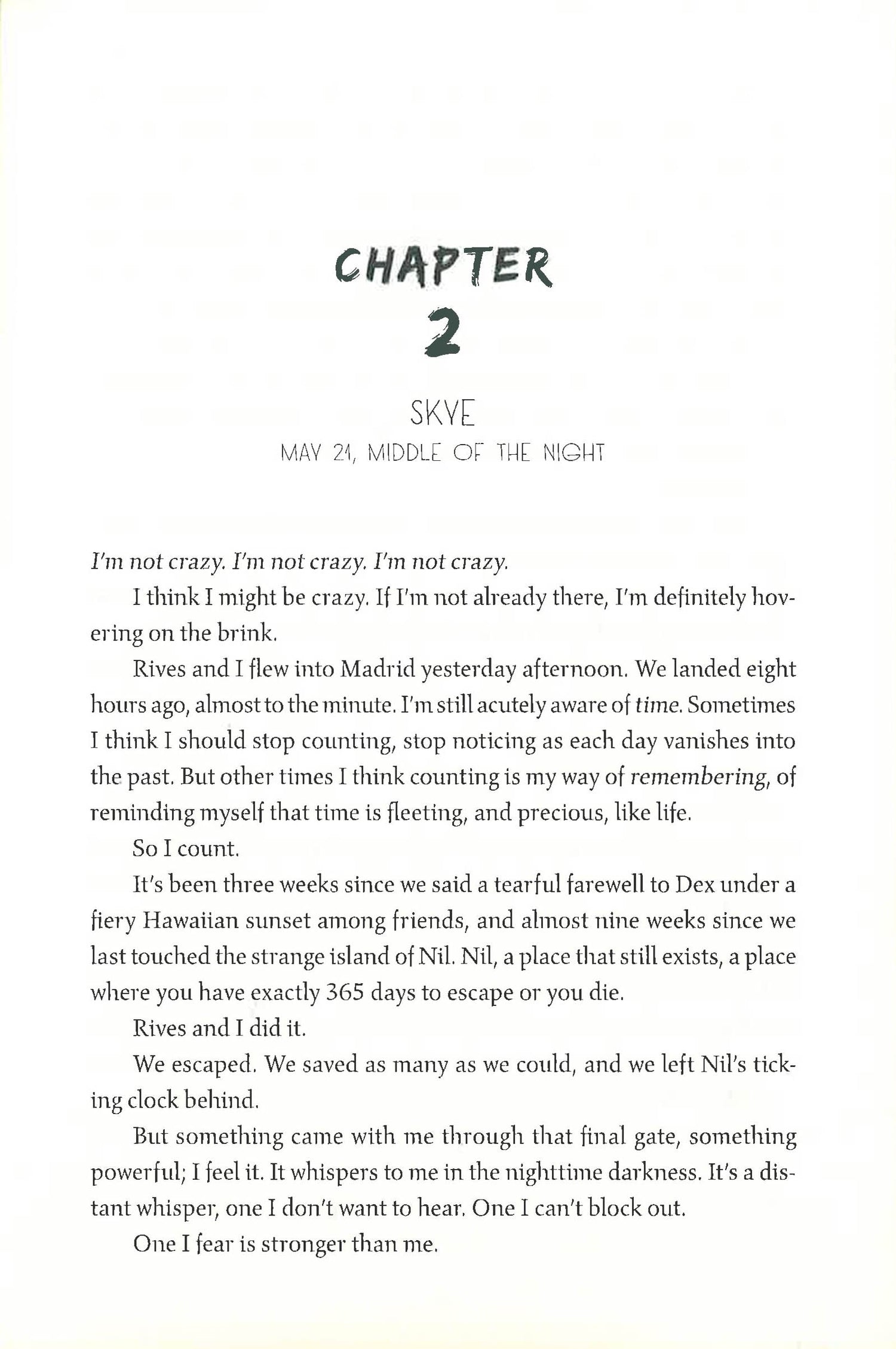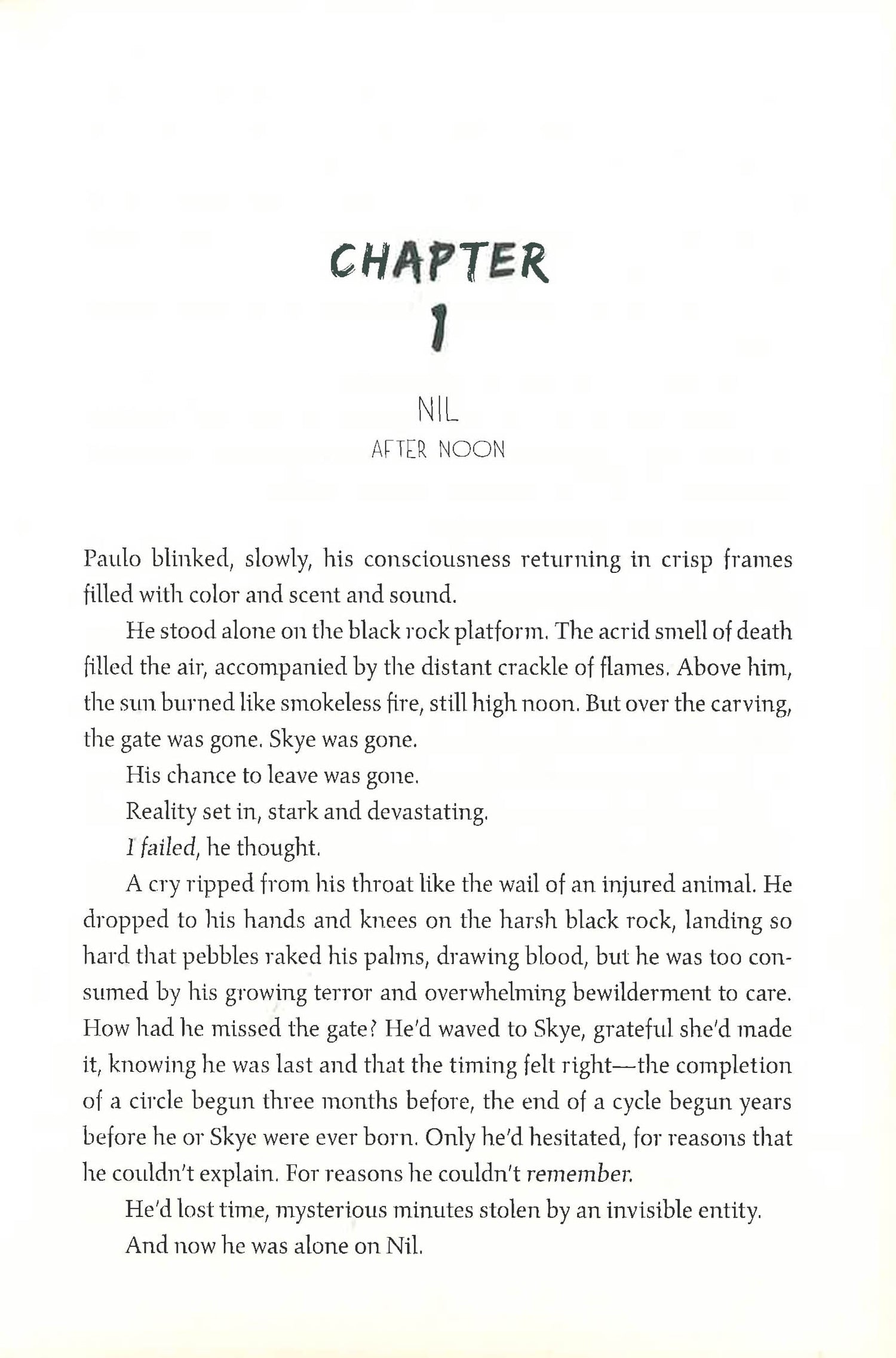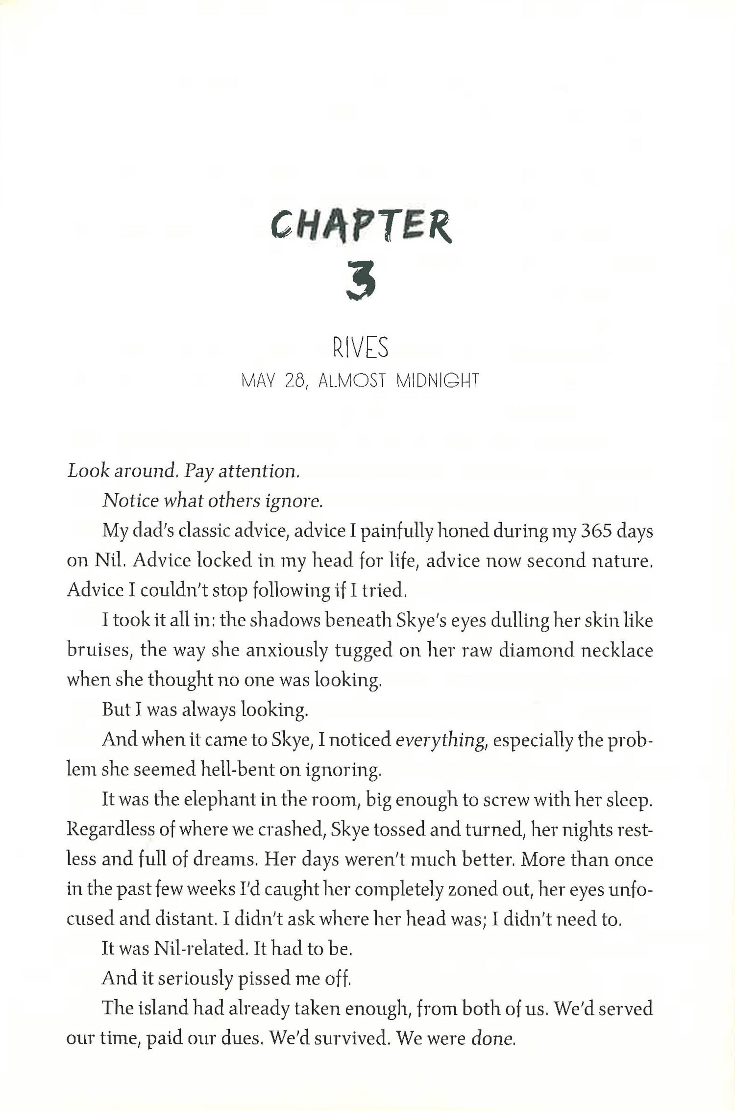 Despite Rives and Skye's attempt to destroy Nil, the island remains. And back in this world, Nil won't let Skye go. Haunted by a darkness she can't ignore, Skye wrestles with Nil nightmares that worsen by the day and threaten to tear her apart. As the island grows in power, Skye fights to keep her mind intact. Soon Skye realizes that to break free of Nil, she must end Nil's vicious cycle once and for all--and she can't do it alone.Who are Nil's new arrivals? Who will return to the island? And who will survive in the end? In this thrilling final installment of the Nil series, the stakes have never been higher.Losing isn't an option, but winning will cost Skye everything.