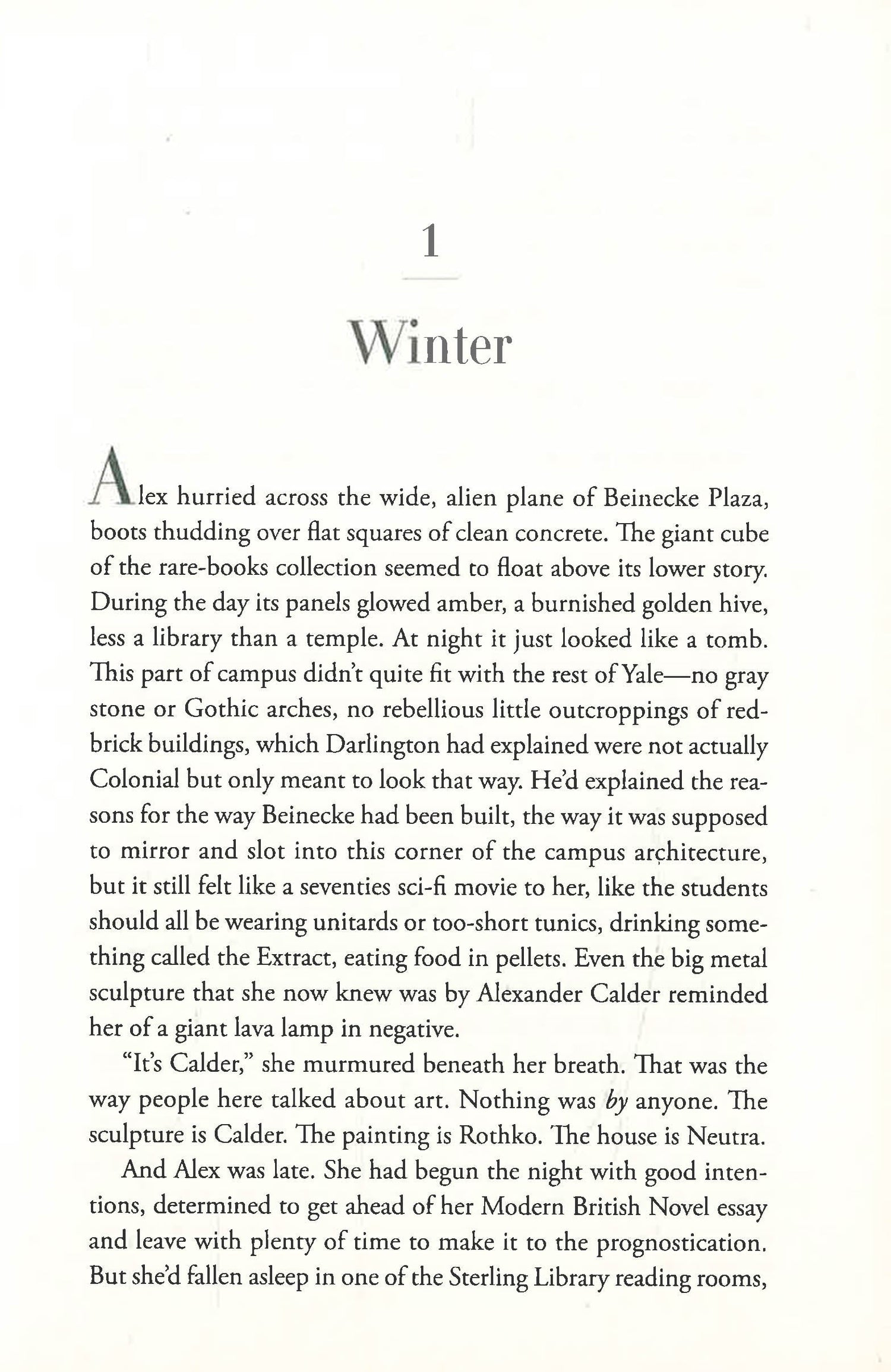 Galaxy “Alex” Stern is the most unlikely member of Yale’s freshman class. Raised in the Los Angeles hinterlands by a hippie mom, Alex dropped out of school early and into a world of shady drug-dealer boyfriends, dead-end jobs, and much, much worse. In fact, by age twenty, she is the sole survivor of a horrific, unsolved multiple homicide. Some might say she’s thrown her life away. But at her hospital bed, Alex is offered a second chance: to attend one of the world’s most prestigious universities on a full ride. What’s the catch, and why her?