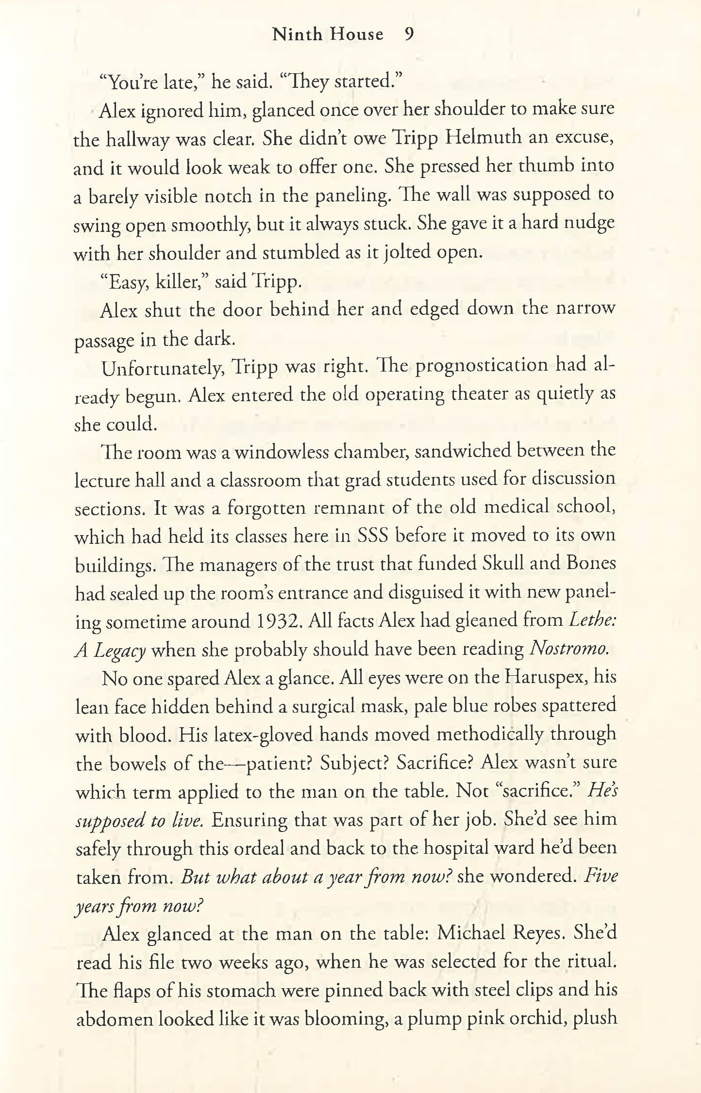 Alex has been tasked with monitoring the mysterious activities of Yale's secret societies - well-known haunts of the rich and powerful. Now there's a dead girl on campus and Alex seems to be the only person who won't accept the neat answer the police and campus administration have come up with for her murder.