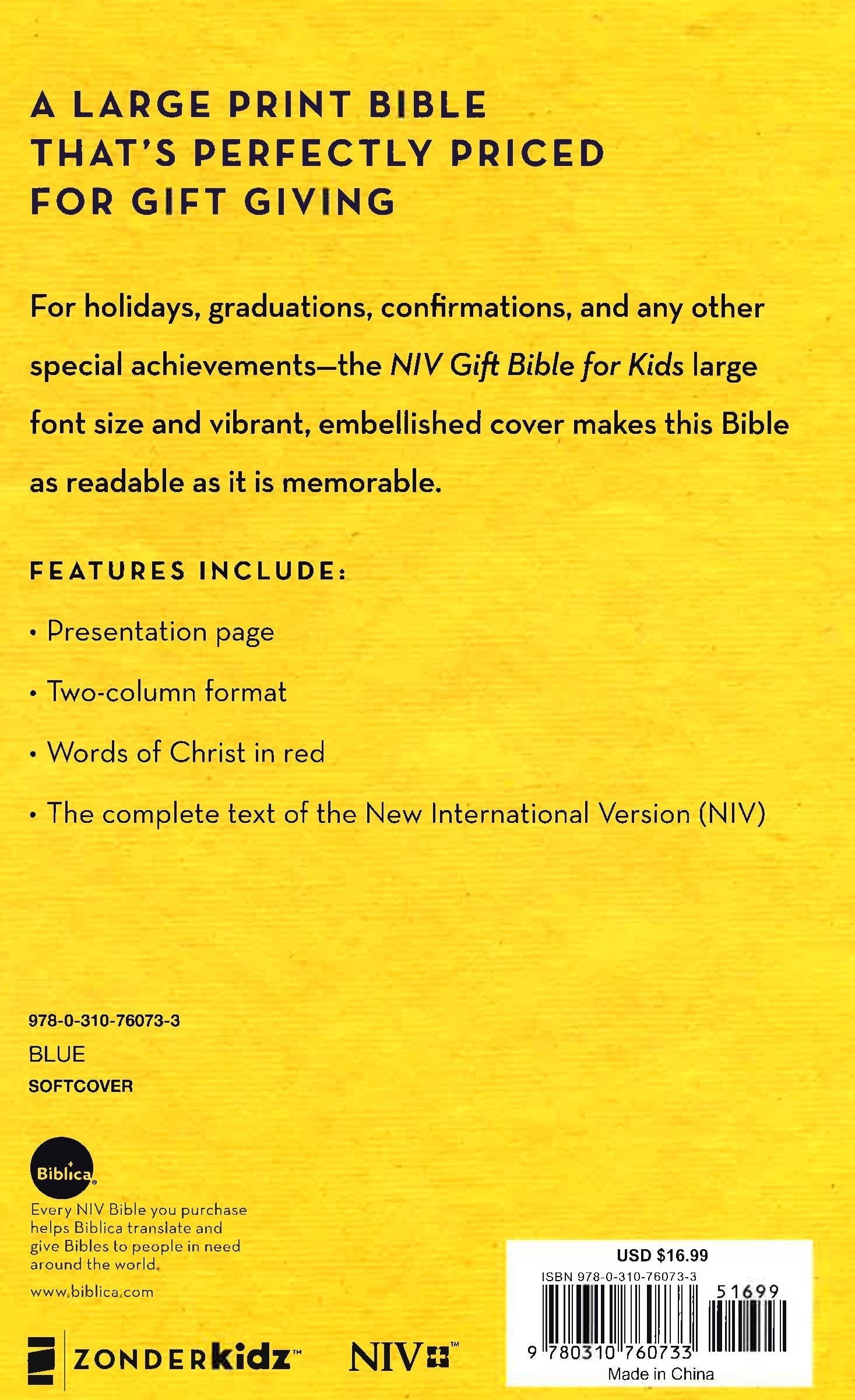 The NIV Gift Bible for Kids, Large Print is the perfect gift for holidays, graduations, confirmations, and other special achievements. A 10.5 font size makes this Bible very readable.