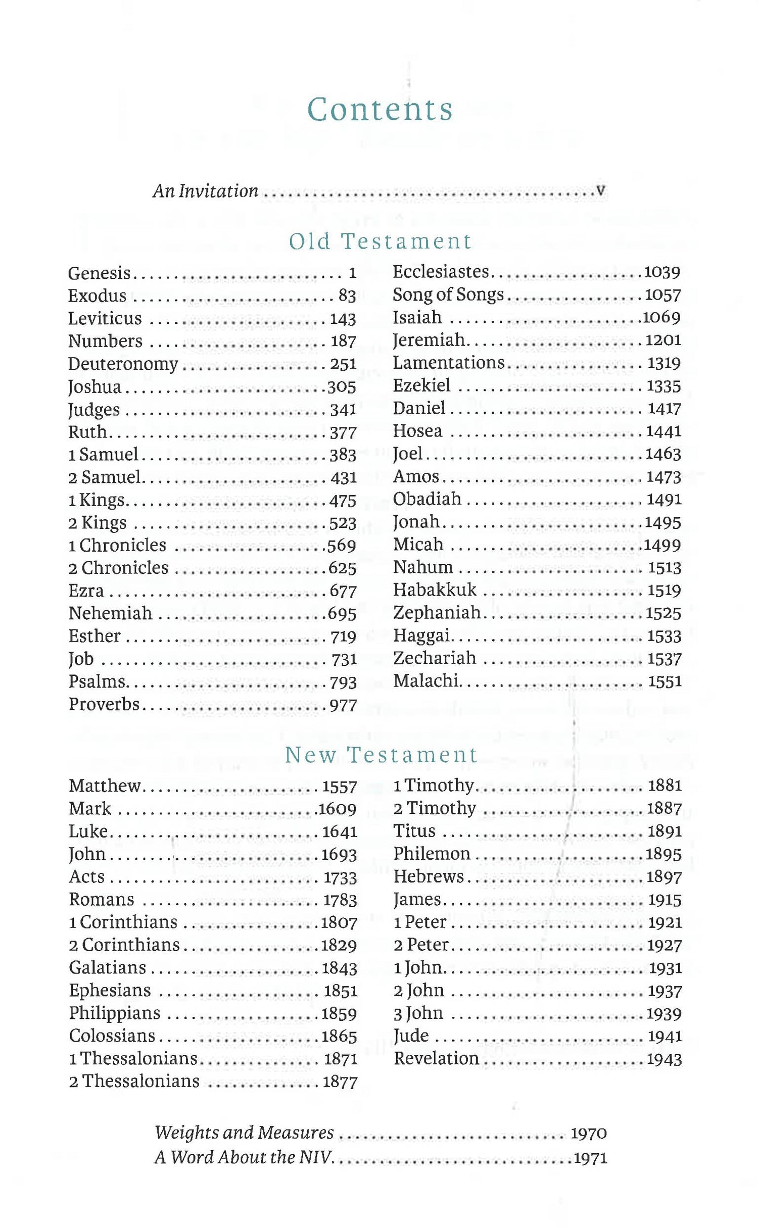 Find a quiet, comfortable spot and enter into the story of God’s Word with the NIV Reader’s Bible. Designed for a seamless reading experience, this Bible contains the complete text of the accurate, readable, and clear NIV translation in single-column format without chapter and verse numbers in the text so you can immerse yourself in the story of Scripture. With footnotes at the back of each book and scripture references elegantly noted at the top of each page, you can smoothly read from Genesis to Revelation while accessing the references you need.Features:• Complete text of the accurate, readable, and clear New International Version text• Readable single-column, black letter text• Line-matched text for the optimum reading experience• Verse numbers removed throughout text• Footnotes follow every book• Scripture reference included at the top of each page• Ribbon marker• 10.5-point type size