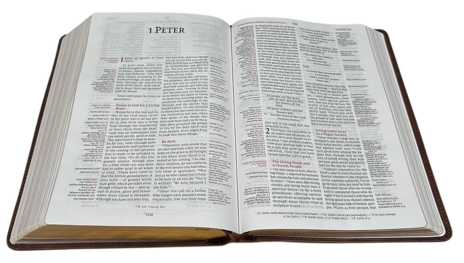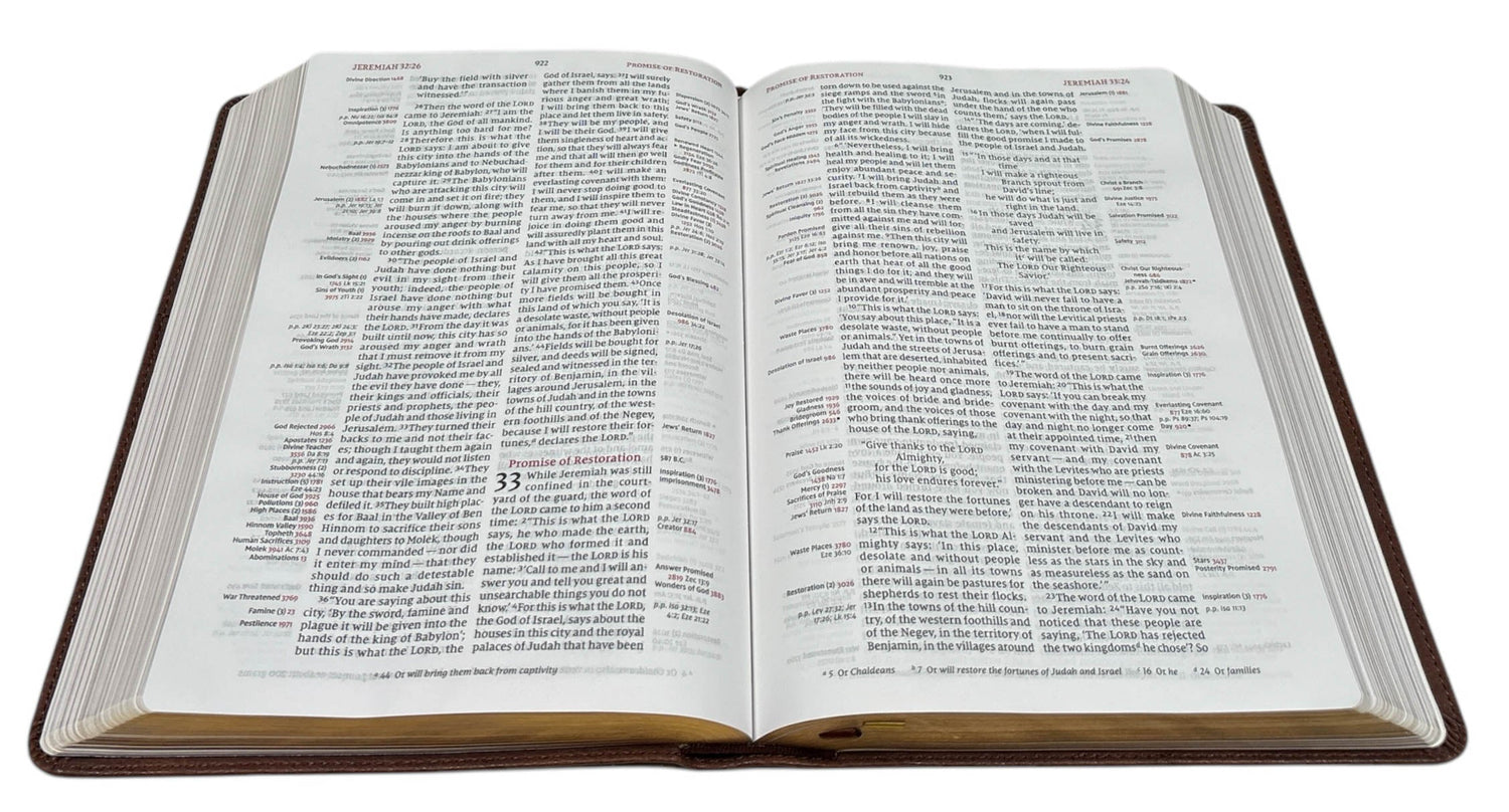 With over 100,000 references listed in the Bible's margins, covering over 8,000 topics, the Thompson(R) Chain-Reference(R) Bible is an ideal tool for comprehensive topical study. The chain-reference system enables you to search the breadth of Scripture's teachings on thousands of topics and allows you to follow those topics throughout the entire Bible. Beloved and acclaimed for more than five generations, this unique reference Bible is unparalleled in its ability to enrich personal devotions, topical study, and sermon preparation.