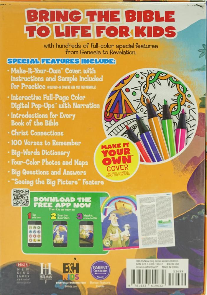 Bring the Bible to life for kids! As kids read the NKJV Big Picture Interactive Bible for Kids, they will see scenes from the Bible literally pop off the page via a free downloadable app that lets them view the images in an augmented-reality format. And they'll listen to a narration of the event by Jenna Lucado Bishop. This colorful, fully designed Bible meets children in the visual world they are so accustomed to by bringing Bible pages to life and showing young readers how they are a part of God's great story. Features include: Augmented Reality on 146 full-page color illustrations "Christ Connection" feature that shows how each Bible story points to Christ"Big Questions?" feature to tell kids what they want to know100 Top Memory Verses for kids to learn"Seeing the Big Picture" feature that digs into key Bible stories and provides parents with discussion material"Big Words" feature that acts as a four-color Bible dictionary Introductions for every book of the Bible, written for kids to understandComplete text of the New King James VersionFull-color maps on 8 pages.