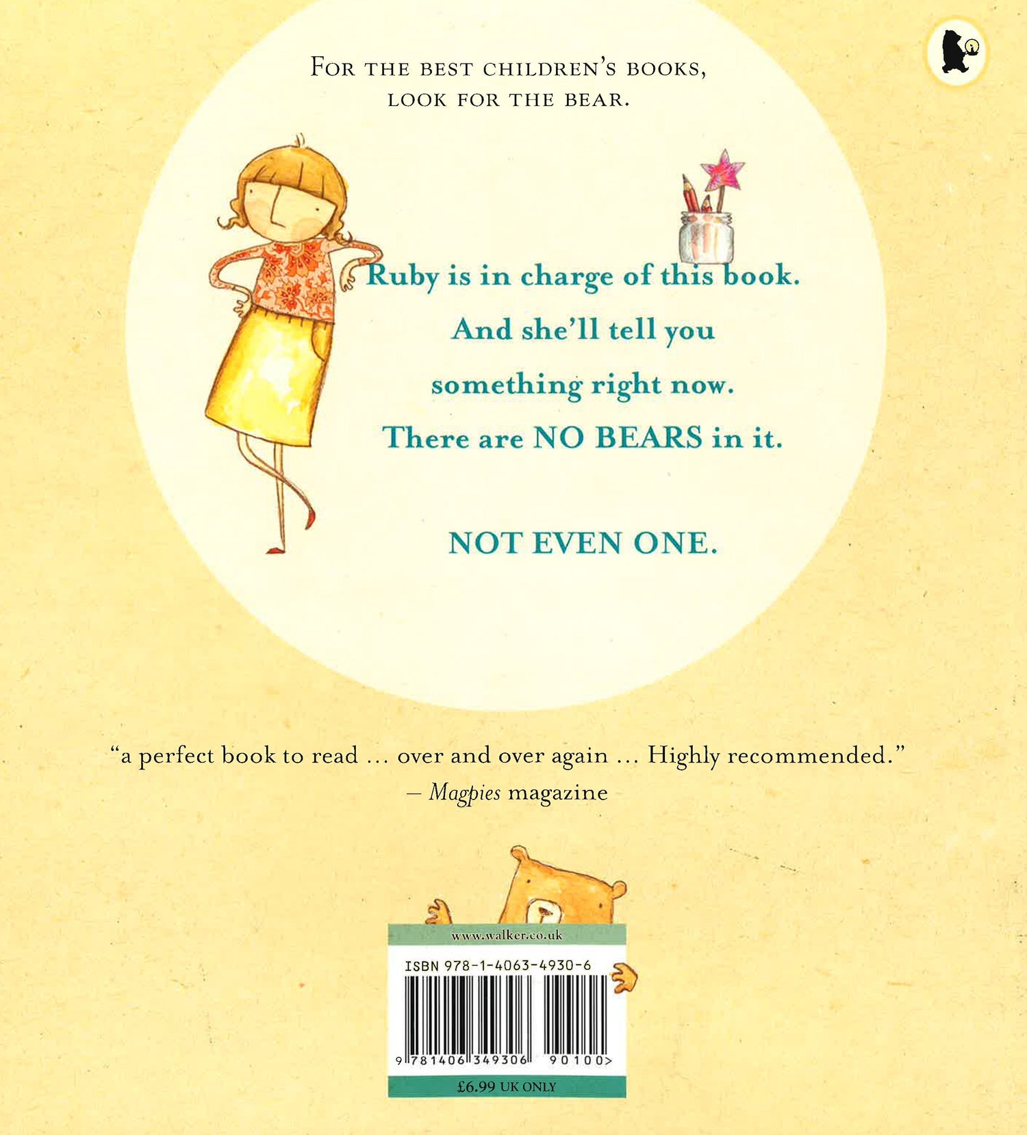 Ruby is in charge of this book. And she'll tell you something right now. There are NO BEARS in it. Not even one. Ella wants to tell you a story - a story with absolutely no bears. You don't need bears for a book. You need pretty things like fairies and princesses and castles and maybe funny things and exciting things. In Ella's kind of story, there are no bears in the village or the castle or the deep dark forest or faraway lands. But there might be ... a monster! Riffing on well-known fairy-tale themes, this fun-packed, offbeat story is perfectly matched by playful illustrations whose running visual joke will keep even bear-lovers smiling.