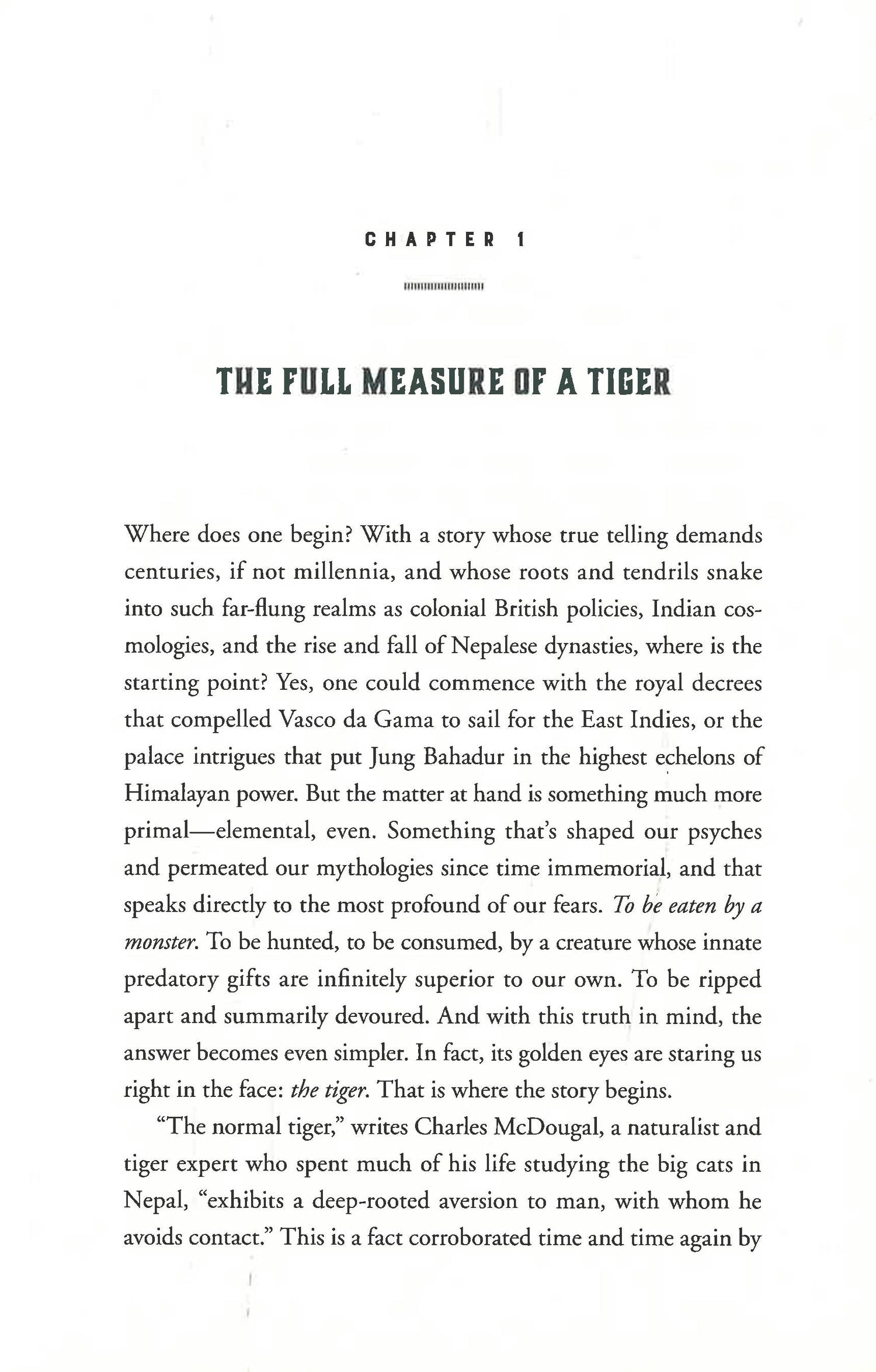 The deadliest animal of all time meets the world's most legendary hunter in a classic battle between man and wild. But this pulse-pounding narrative is also a nuanced story of how colonialism and environmental destruction upset the natural order, placing man, tiger and nature on a collision course. In Champawat, India, circa 1900, a Bengal tigress was wounded by a poacher in the forests of the Himalayan foothills. Unable to hunt her usual prey, the tiger began stalking and eating an easier food source: human beings. Between 1900 and 1907, the Champawat Man-Eater, as she became known, emerged as the most prolific serial killer of human beings the world has ever known, claiming an astonishing 436 lives. Desperate for help, authorities appealed to renowned local hunter Jim Corbett, an Indian-born Brit of Irish descent, who was intimately familiar with the Champawat forest. Corbett, who would later earn fame and devote the latter part of his life to saving the Bengal tiger and its habitat, sprang into action. Like a detective on the tail of a serial killer, he tracked the tiger's movements, as the tiger began to hunt him in return. This was the beginning of Corbett's life-long love of tigers, though his first encounter with the Champawat Tiger would be her last.
