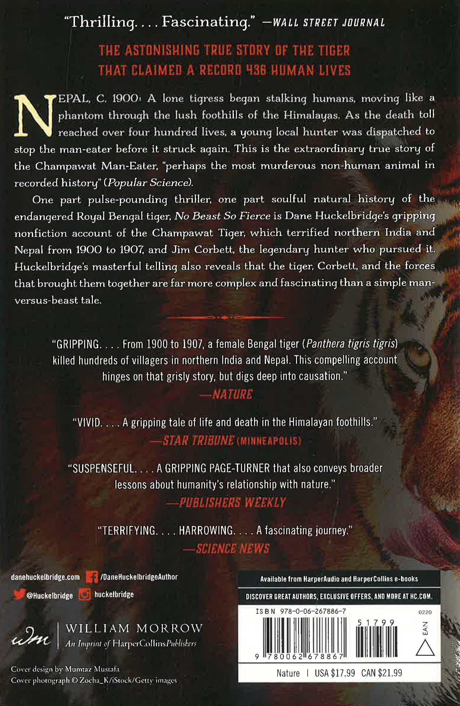 One part pulse-pounding thriller, one part soulful natural history of the endangered Royal Bengal tiger, No Beast So Fierce is Dane Huckelbridge's gripping nonfiction account of the Champawat tiger, which terrified northern India and Nepal from 1900 to 1907, and Jim Corbett, the legendary hunter who pursued it. Huckelbridge's masterful telling also reveals that the tiger, Corbett, and the forces that brought them together are far more complex and fascinating than a simple man-versus-beast tale.