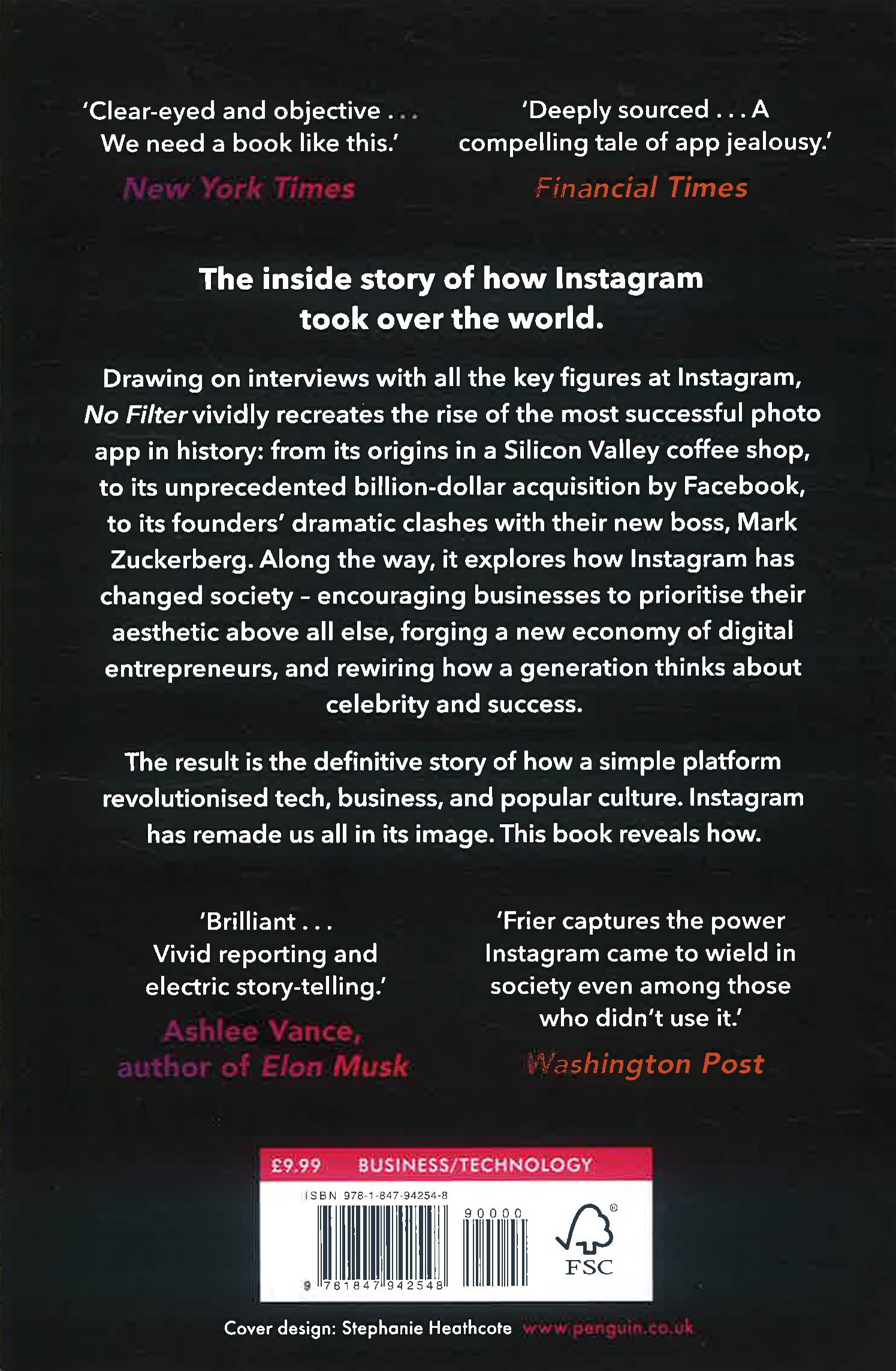 Drawing on interviews with all the key figures at Instagram, No Filter vividly recreates the rise of the most successful photo app in history: from its origins in a Silicon Valley coffee shop, to its unprecedented billion-dollar acquisition by Facebook, to its founders' dramatic clashes with their new boss, Mark Zuckerberg. Along the way, it explores how Instagram has changed society - encouraging businesses to prioritise their aesthetic above all else, forging a new economy of digital entrepreneurs, and rewiring how a generation thinks about celebrity and success.