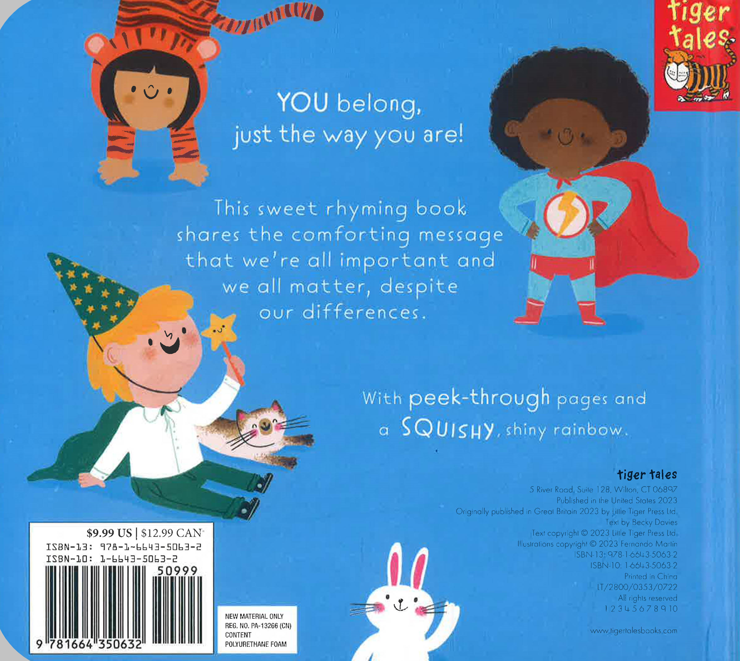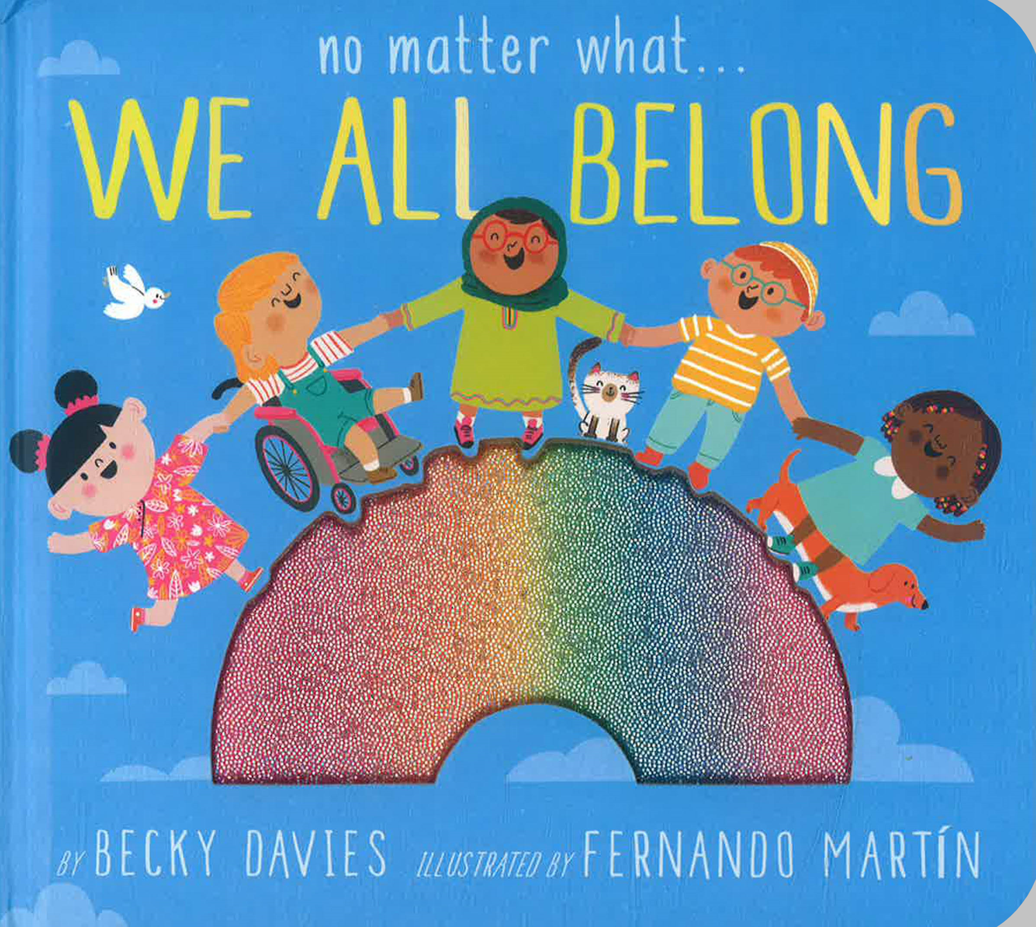 This fresh and friendly book about diversity presents the message that every person belongs, no matter what our differences may be, and features padded, shiny fabric; peek-through pages; die cuts throughout; and a shiny cloth rainbow at the end that shows through the front cover.