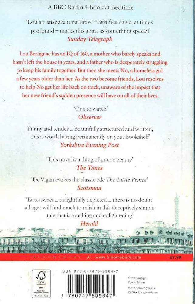 Translated from the French by George Miller A Richard & Judy Book Club selectionLou Bertignac has an IQ of 160 and a good friend in class rebel Lucas. At home her father puts a brave face on things but cries in secret in the bathroom, while her mother rarely speaks and hardly ever leaves the house. To escape this desolate world, Lou goes often to Gare d'Austerlitz to see the big emotions in the smiles and tears of arrival and departure. But there she also sees the homeless, meets a girl called No, only a few years older than herself, and decides to make homelessness the topic of her class presentation. Bit by bit, Lou and No become friends until, the project over, No disappears. Heartbroken, Lou asks her parents the unaskable question and her parents say: Yes, No can come to live with them. So Lou goes down into the underworld of Paris's street people to bring her friend up to the light of a home and family life, she thinks.