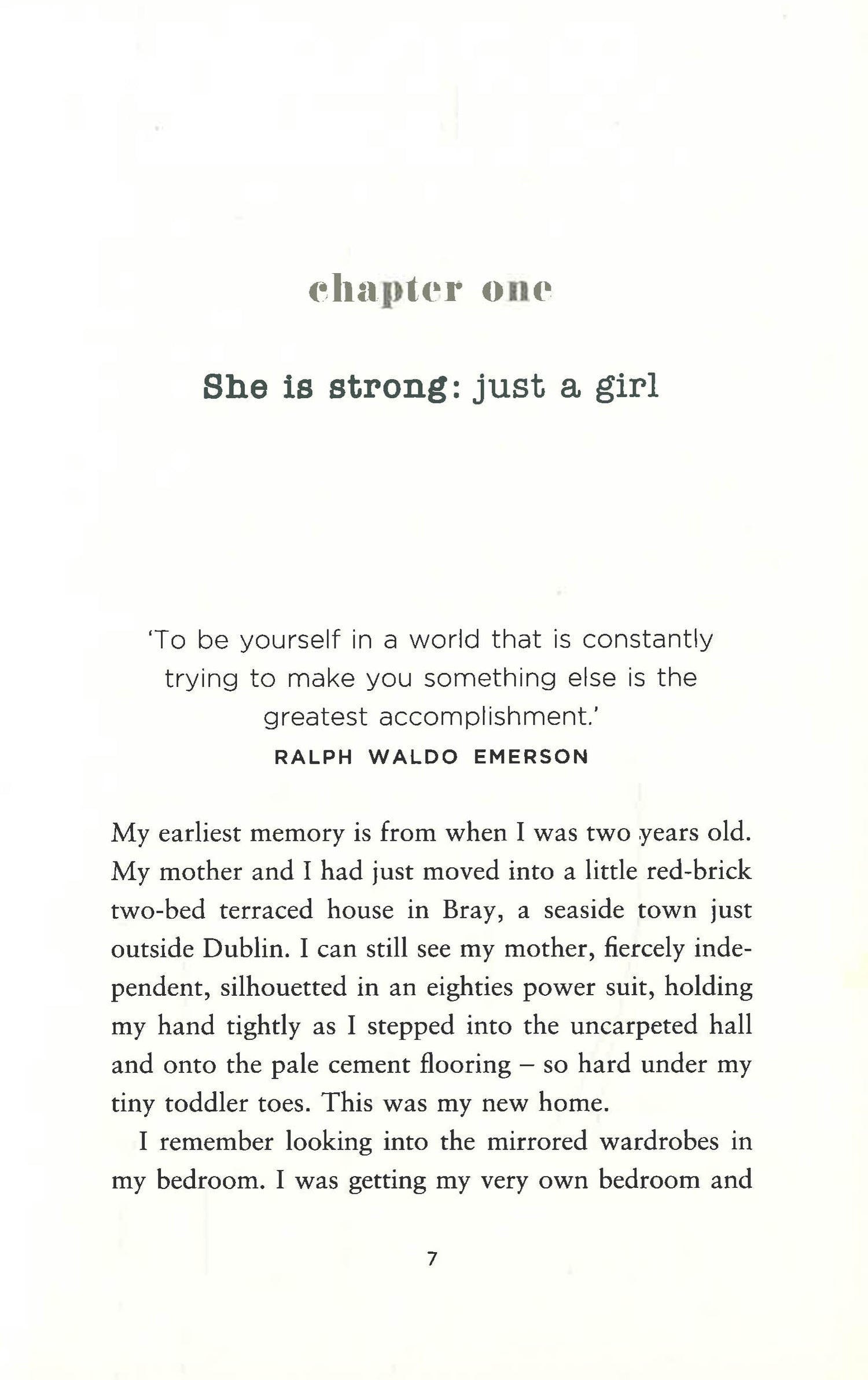 'When I was a kid the first album I owned was by Wilson Phillips. I remember the lyric from the song Hold On, 'No one can change your life except for you'. It's how I've chosen to live my life. There is a freedom when you take back control. Stop waiting for someone to save you and do it yourself. I recognise everyone has different levels of struggle but no one just hands you a chance. We don't have to wait for Prince Charming to rescue us, or wait for the opportunity to come to us. We can be our own heroes. We can create our own dreams.'