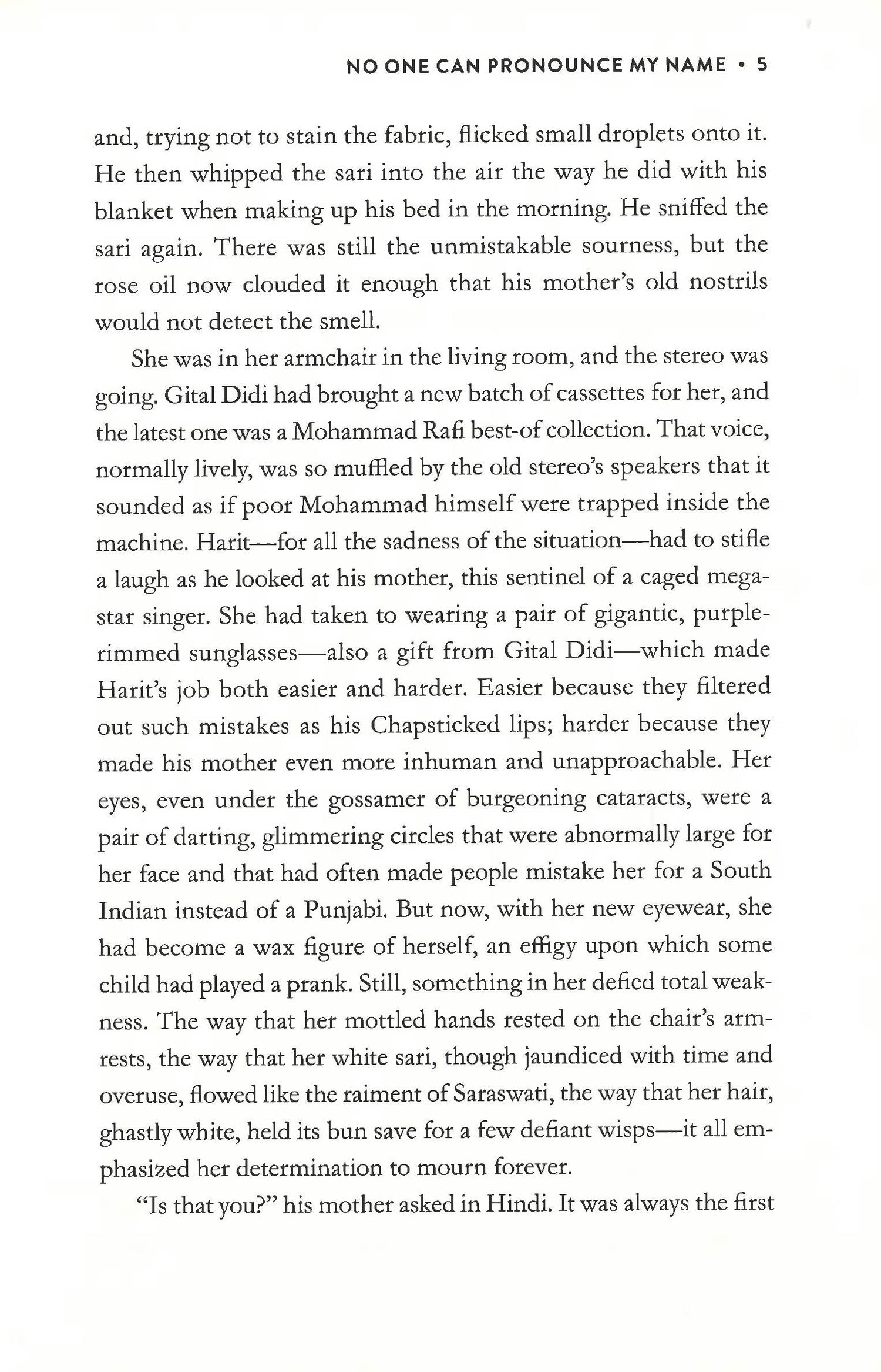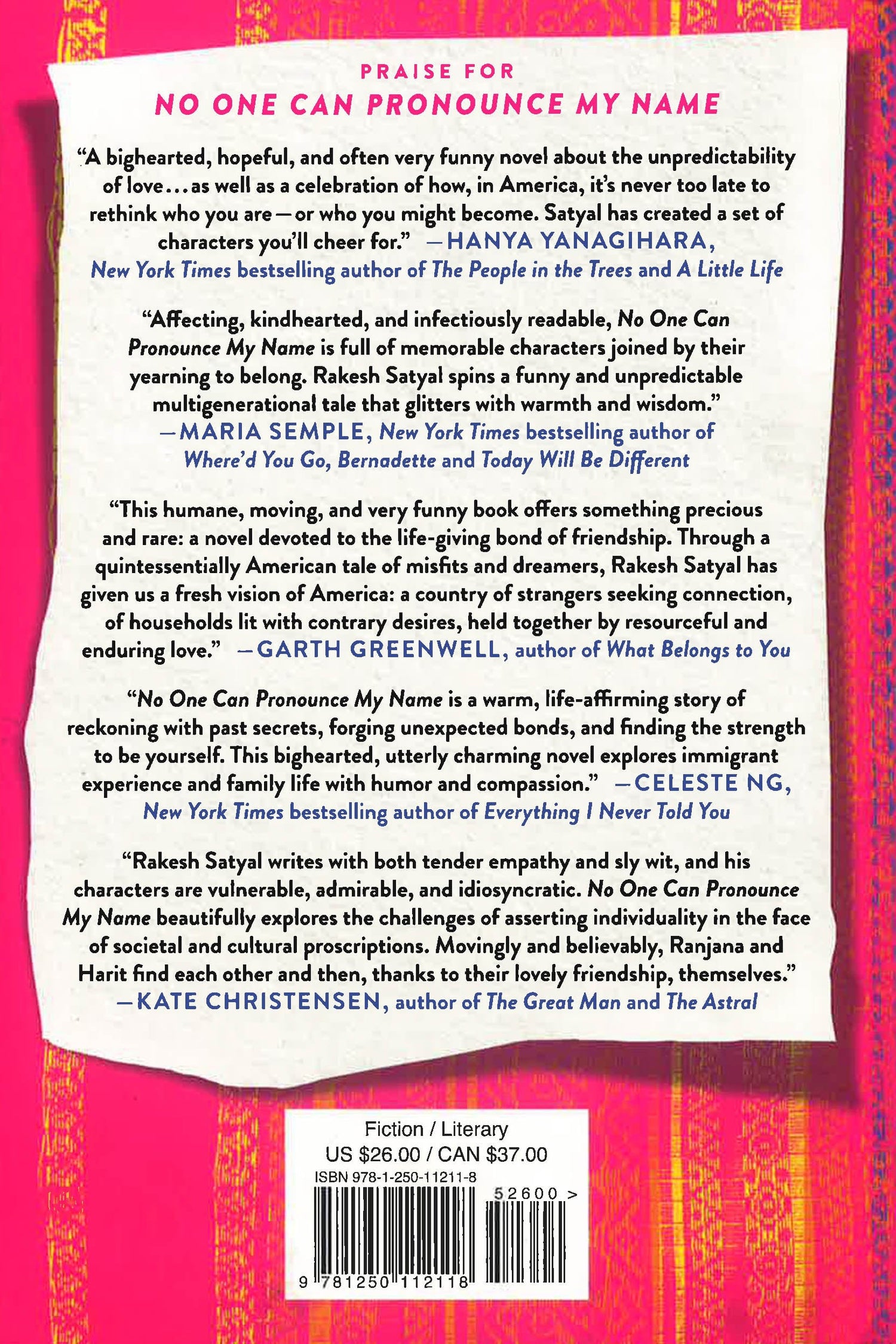 One of Goodreads' Best Books of the Month (May 2017) One of BuzzFeed's 31 Incredible New Books You Need to Read This Spring One of The Millions' Most Anticipated Books of the Year A HUMOROUS AND TENDER MULTIGENERATIONAL NOVEL ABOUT IMMIGRANTS AND OUTSIDERS--THOSE TRYING TO FIND THEIR PLACE IN AMERICAN SOCIETY AND WITHIN THEIR OWN FAMILIES In a suburb outside Cleveland, a community of Indian Americans has settled into lives that straddle the divide between Eastern and Western cultures. For some, America is a bewildering and alienating place where coworkers can't pronounce your name but will eagerly repeat the Sanskrit phrases from their yoga class. Harit, a lonely Indian immigrant in his mid forties, lives with his mother who can no longer function after the death of Harit's sister, Swati. In a misguided attempt to keep both himself and his mother sane, Harit has taken to dressing up in a sari every night to pass himself off as his sister. Meanwhile, Ranjana, also an Indian immigrant in her mid forties, has just seen her only child, Prashant, off to college. Worried that her husband has begun an affair, she seeks solace by writing paranormal romances in secret. When Harit and Ranjana's paths cross, they begin a strange yet necessary friendship that brings to light their own passions and fears. Rakesh Satyal's No One Can Pronounce My Name is a distinctive, funny, and insightful look into the lives of people who must reconcile the strictures of their culture and traditions with their own dreams and desires.