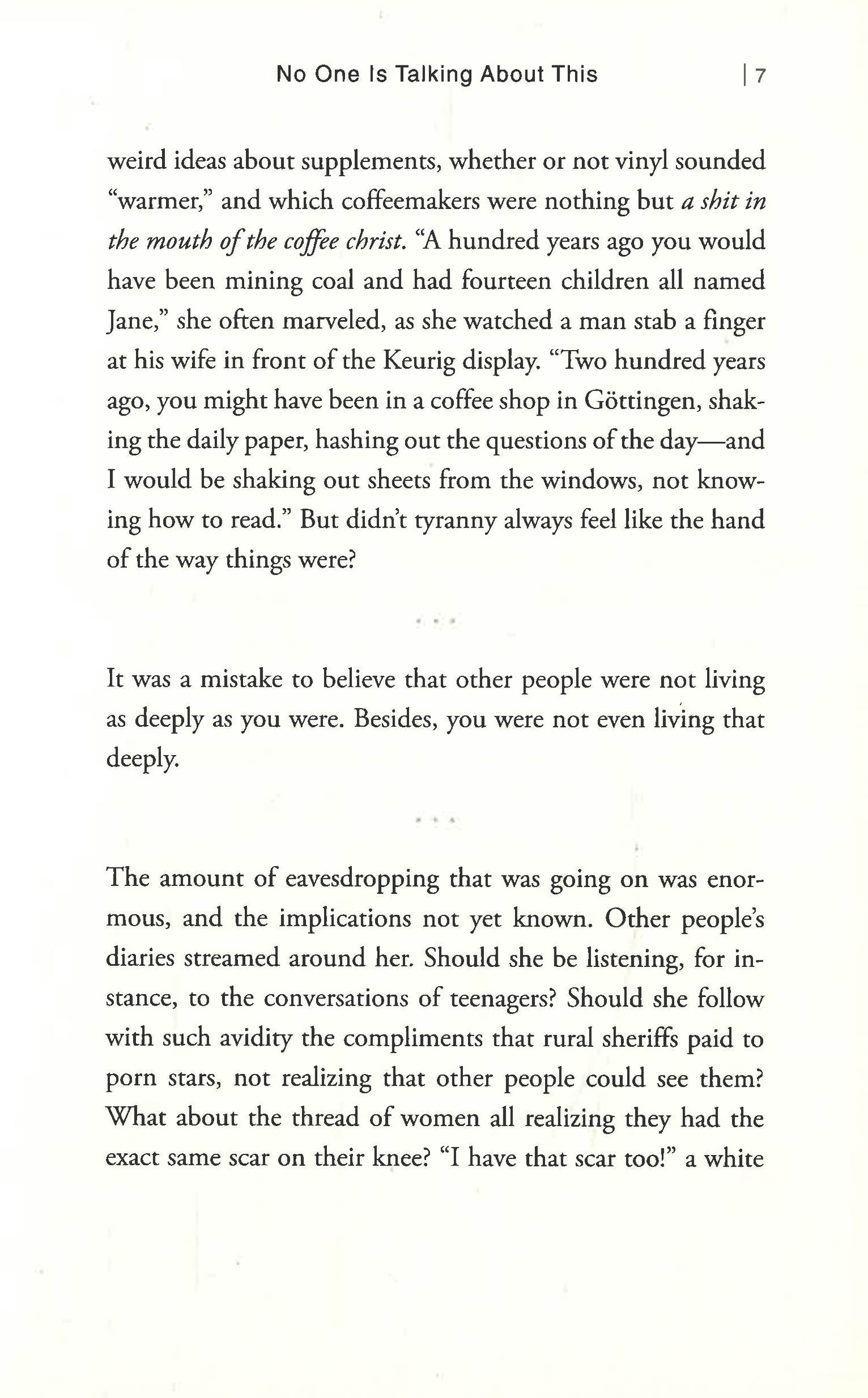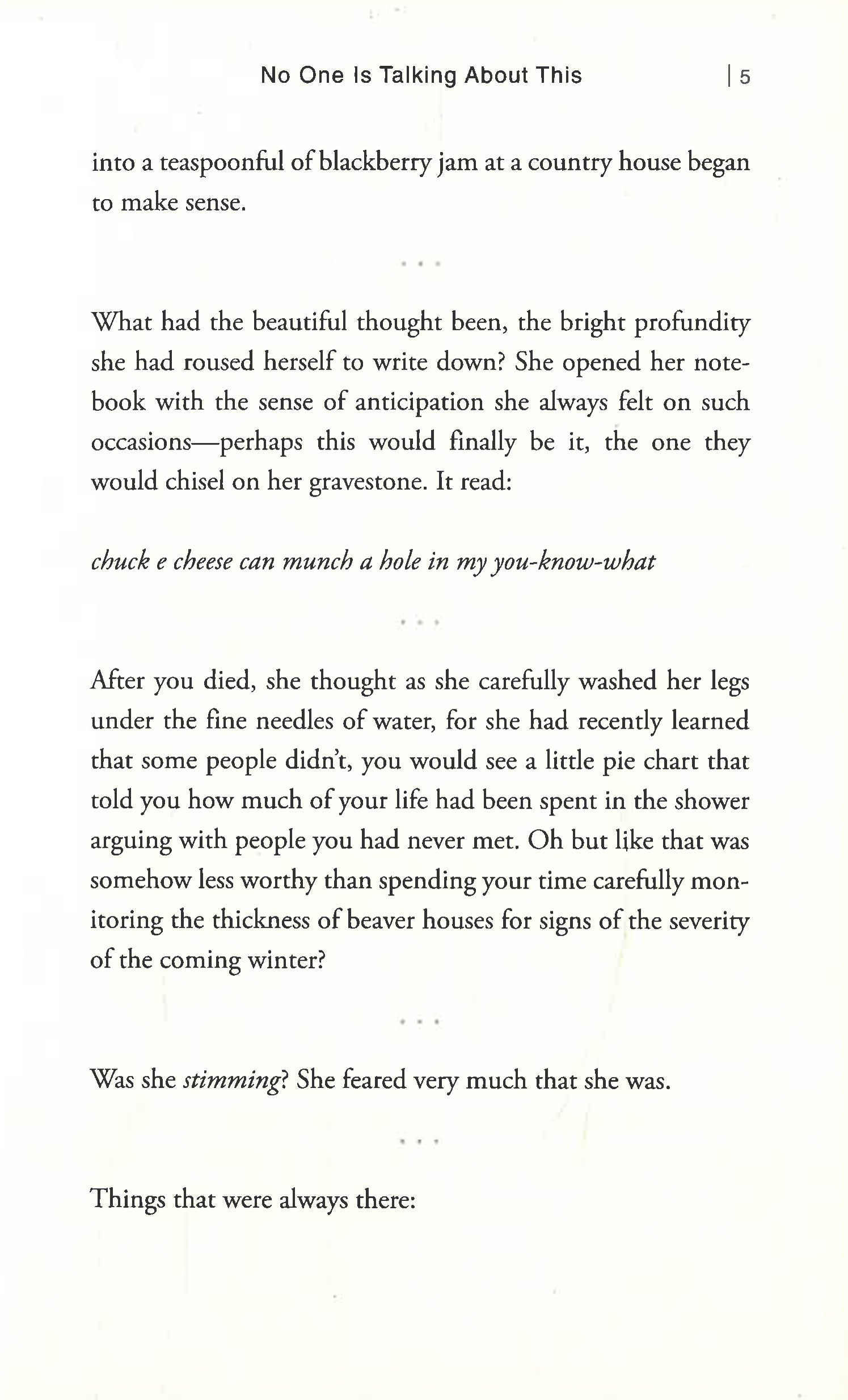 Fragmentary and omniscient, incisive and sincere, No One Is Talking About This is at once a love letter to the endless scroll and a profound, modern meditation on love, language, and human connection from a singular voice in American literature.