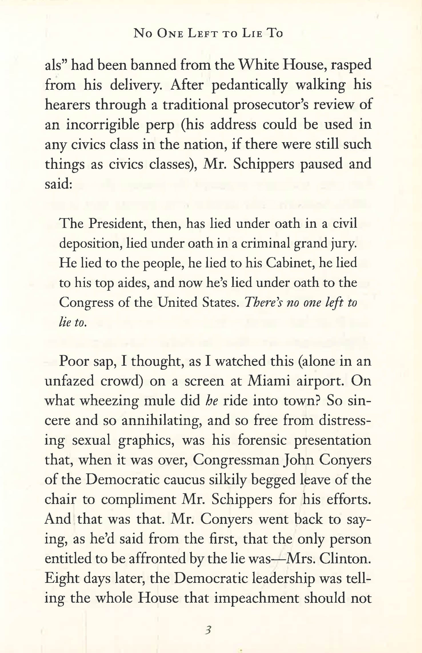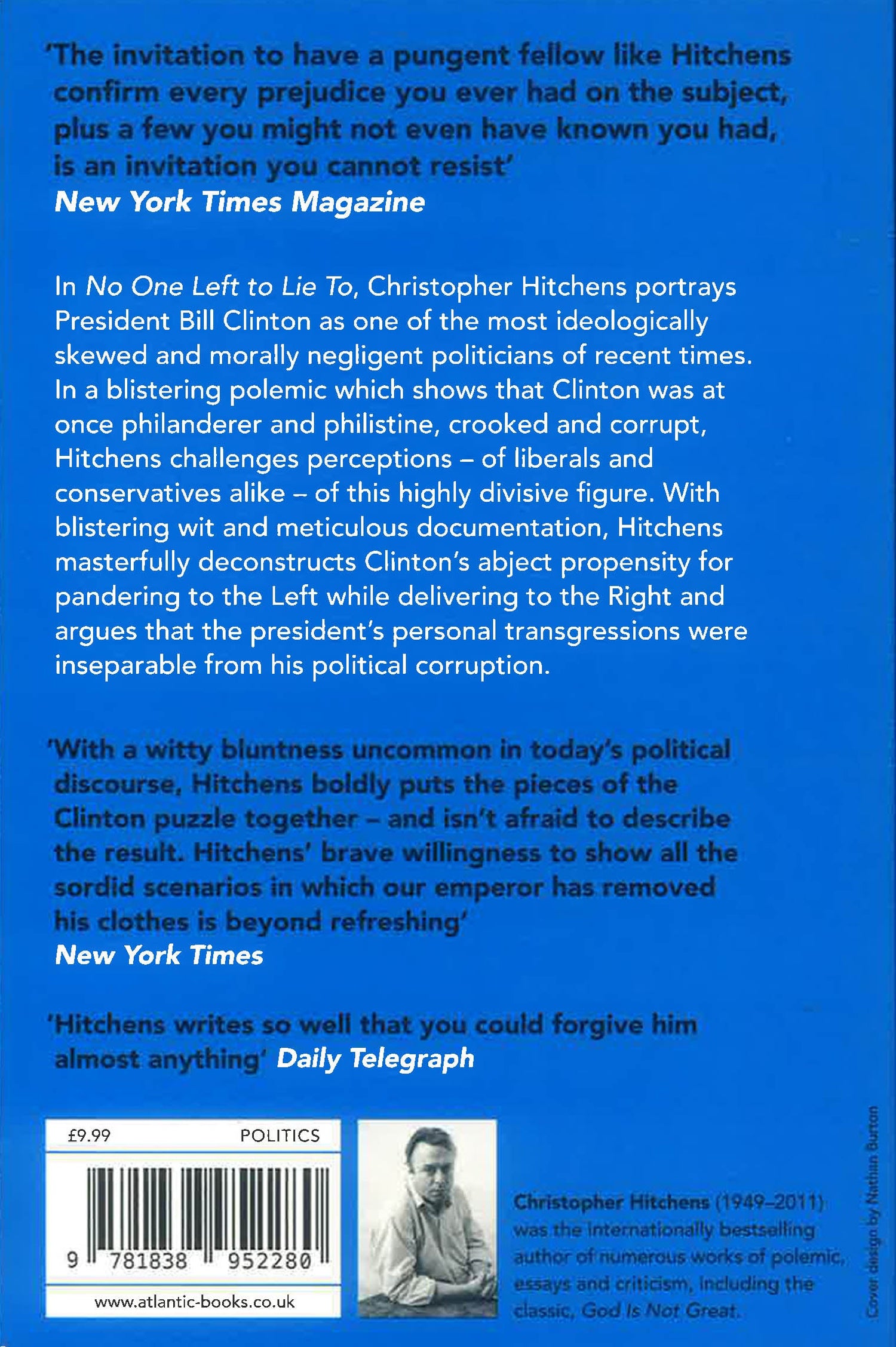 In No One Left to Lie To, Christopher Hitchens portrays President Bill Clinton as one of the most ideologically skewed and morally negligent politicians of recent times. In a blistering polemic which shows that Clinton was at once philanderer and philistine, crooked and corrupt, Hitchens challenges perceptions - of liberals and conservatives alike - of this highly divisive figure.