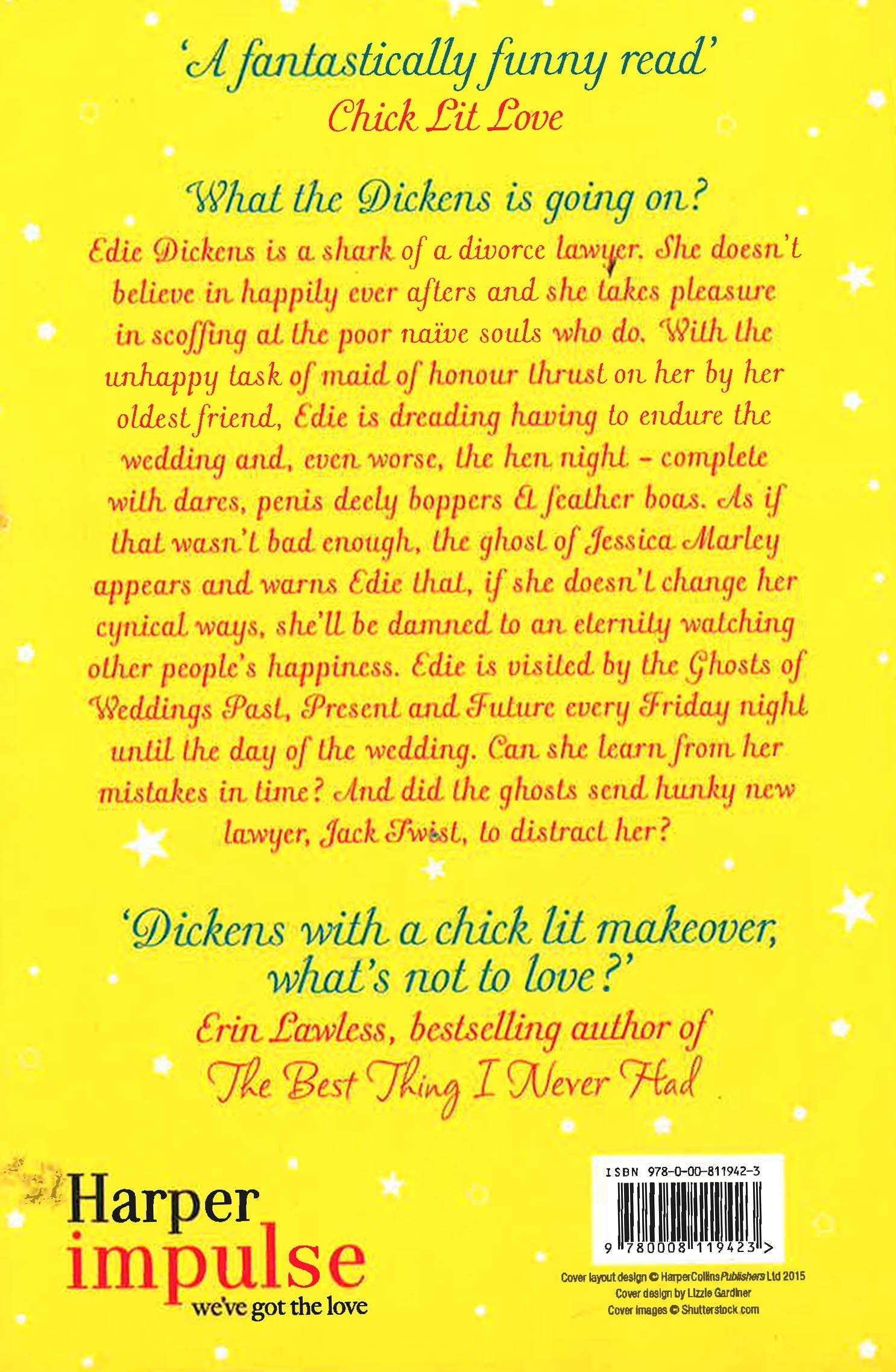 *Winner of the RNA Joan Hessayon New Writers' Scheme Award** 'Dickens with a chick lit makeover, what's not to love??' - Bestselling author of 'The Best Thing I Never Had', Erin Lawless What the Dickens is going on? Edie Dickens is a shark of a divorce lawyer. She doesn't believe in love and she scoffs at happily ever afters, however she's agreed to be maid of honour for her oldest friend, Mel in two weeks and she still has the hen night to endure. But she has even more to endure when she's visited by Jessica Marley's ghost and finds out she must change her ways or end up being damned to an eternity watching other people's happiness. Edie is visited by the Ghosts of Weddings Past, Present and Future, every Friday night until the day of the wedding. Can she learn from her mistakes in time? And did the ghosts send the hunky new lawyer, Jack Twist, to distract her?