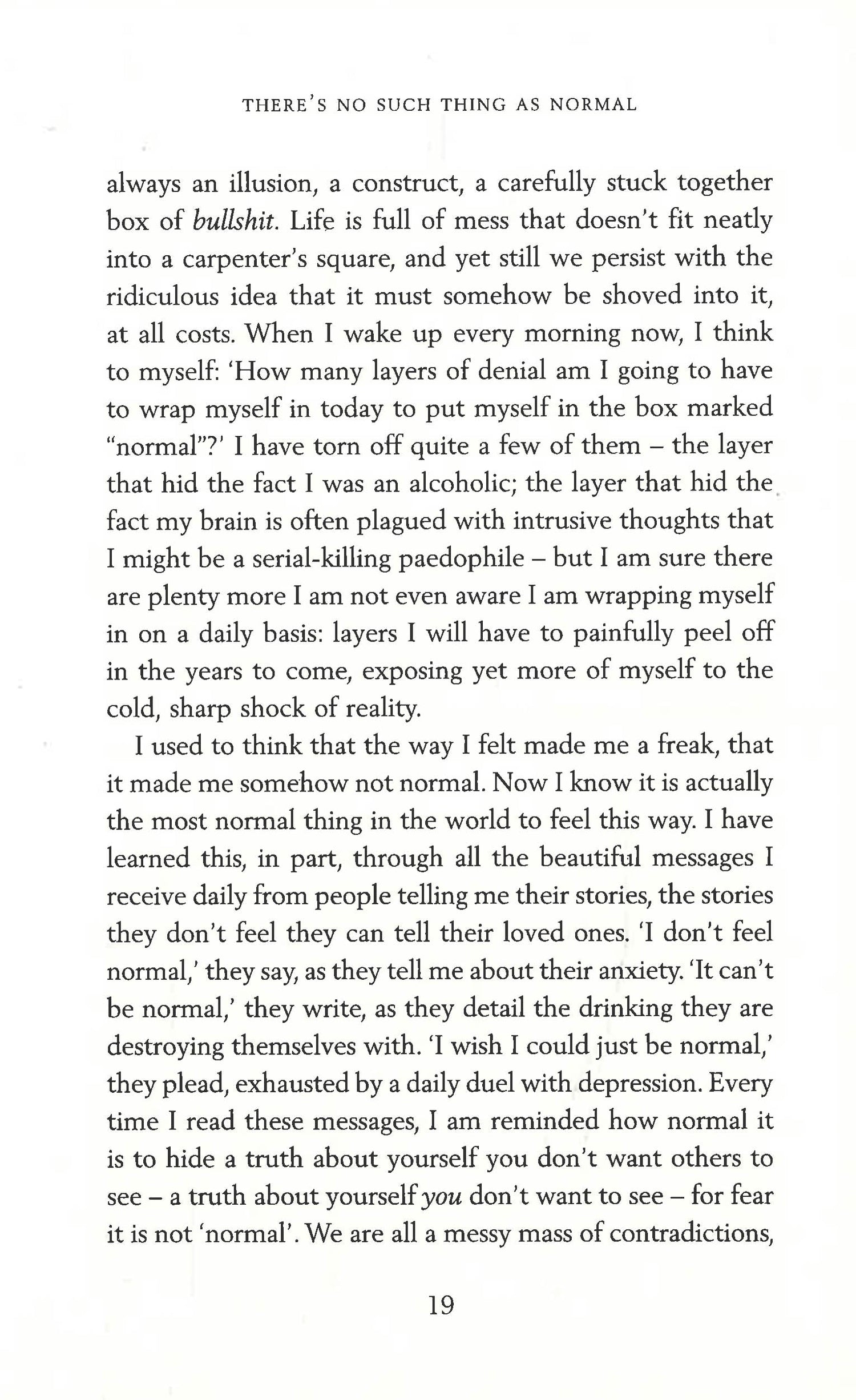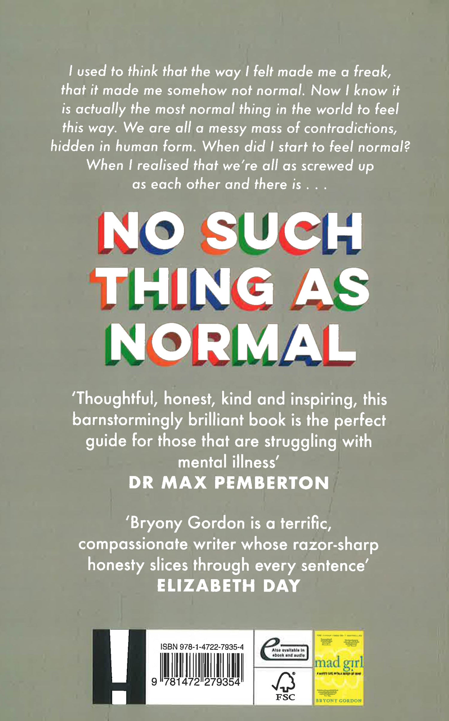 From depression and anxiety to personality disorders, one in four of us experience mental health issues every year and, in these strange and unsettling times, more of us than ever are struggling to cope. In No Such Thing As Normal, Bryony offers sensible, practical advice, covering subjects such as sleep, addiction, worry, medication, self-image, boundary setting, therapy, learned behaviour, mindfulness and, of course - as the founder of Mental Health Mates - the power of walking and talking. She also strives to equip those in need of help with tools and information to get the best out of a poorly funded system that can be both frightening and overwhelming. The result is a lively, honest and direct guide to mental health that cuts through the Instagram-wellness bubble to talk about how each of us can feel stronger, better and just a little bit less alone.