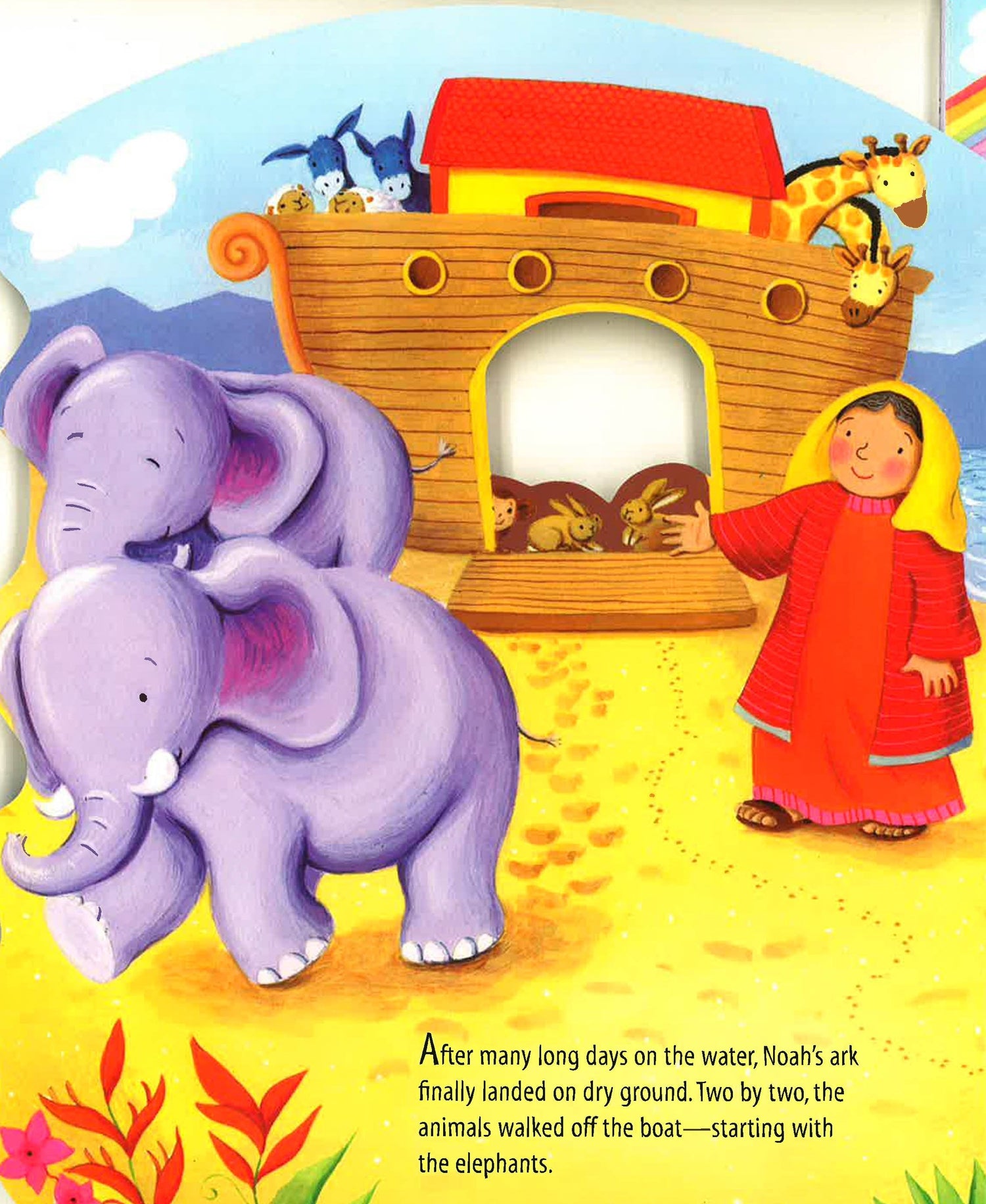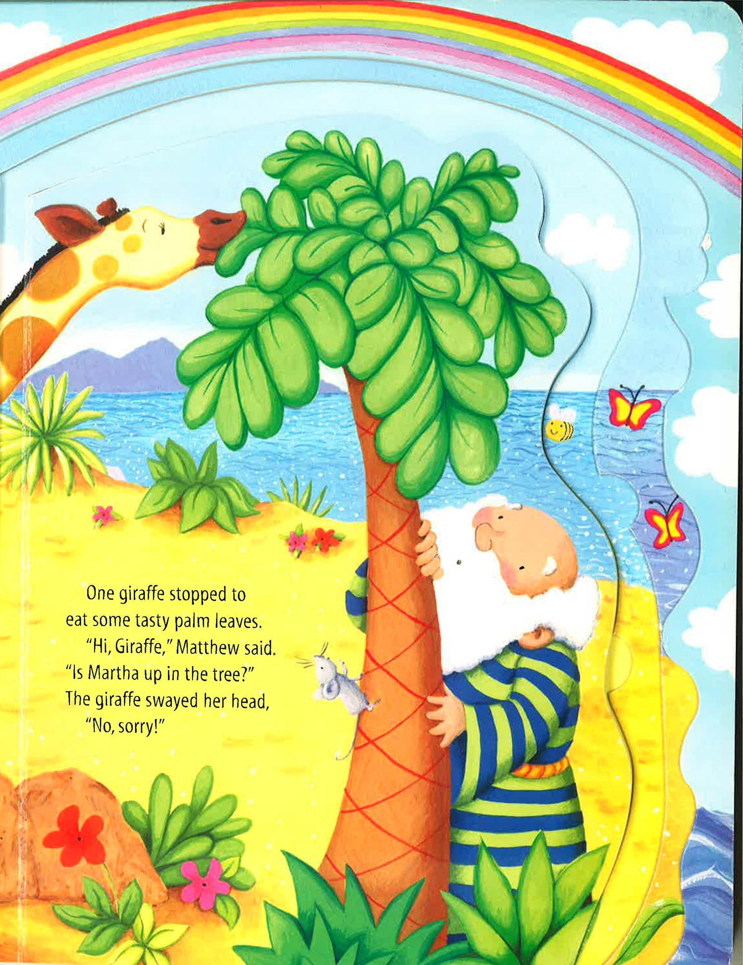 With a message about hope and new beginnings plus adorable illustrations, this story of one little mouse's experience after the Great Flood comes to life as children open the nested pages to discover the animals as they leave the ark. The Great Flood is over and one little mouse searches for his partner. Where is she? As each pair of animals exit the ark, the little mouse asks everyone who walks by. Finally, in the end, Noah walks out the door, and in his hands rests a cozy basket with the other mouse nestled in with her babies. Each nested page in this lovely illustrated book open to reveal another pair of animals, and when all of the pages are opened, all of the animals can be seen at once with Noah in the middle.