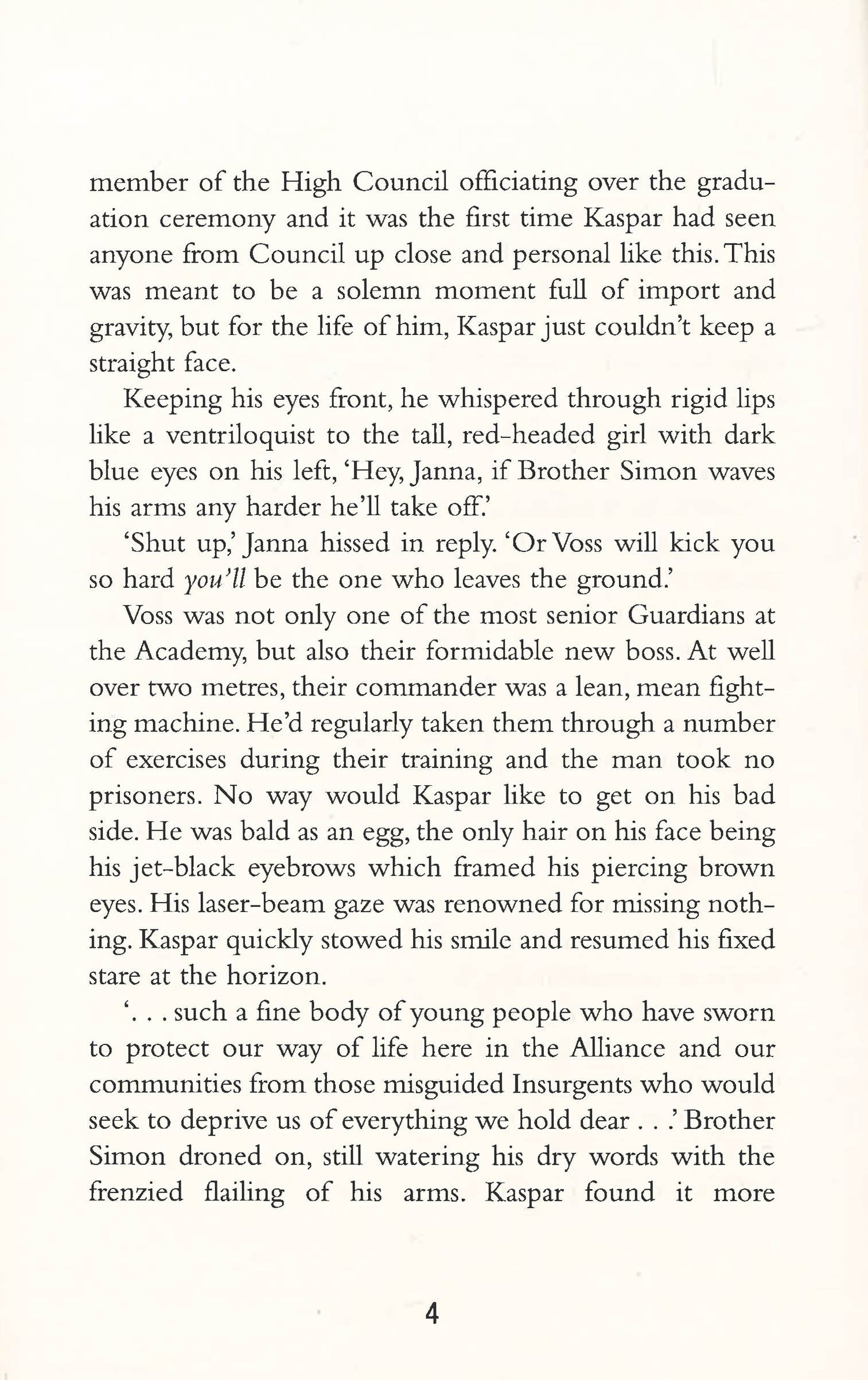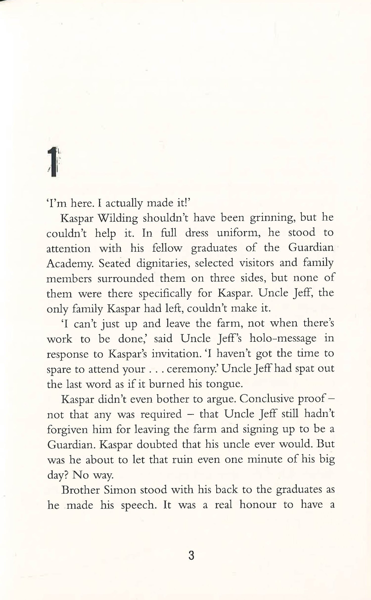 Years after a violent war destroyed much of the world, Kaspar has grown up in a society based on peace and harmony. But beyond the city walls, a vicious band of rebels are plotting to tear this peace apart. It is up to the Guardians - an elite peacekeeping force - to protect the city, without ever resorting to the brutal methods of their enemy. When Kaspar joins the Guardians, he has a chance encounter with a rebel - a beautiful girl named Rhea. Haunted from that moment on by strange visions and memories - memories that could only belong to Rhea - he realizes he hasn't been told the truth about what the rebels really want, and what he's really fighting for.