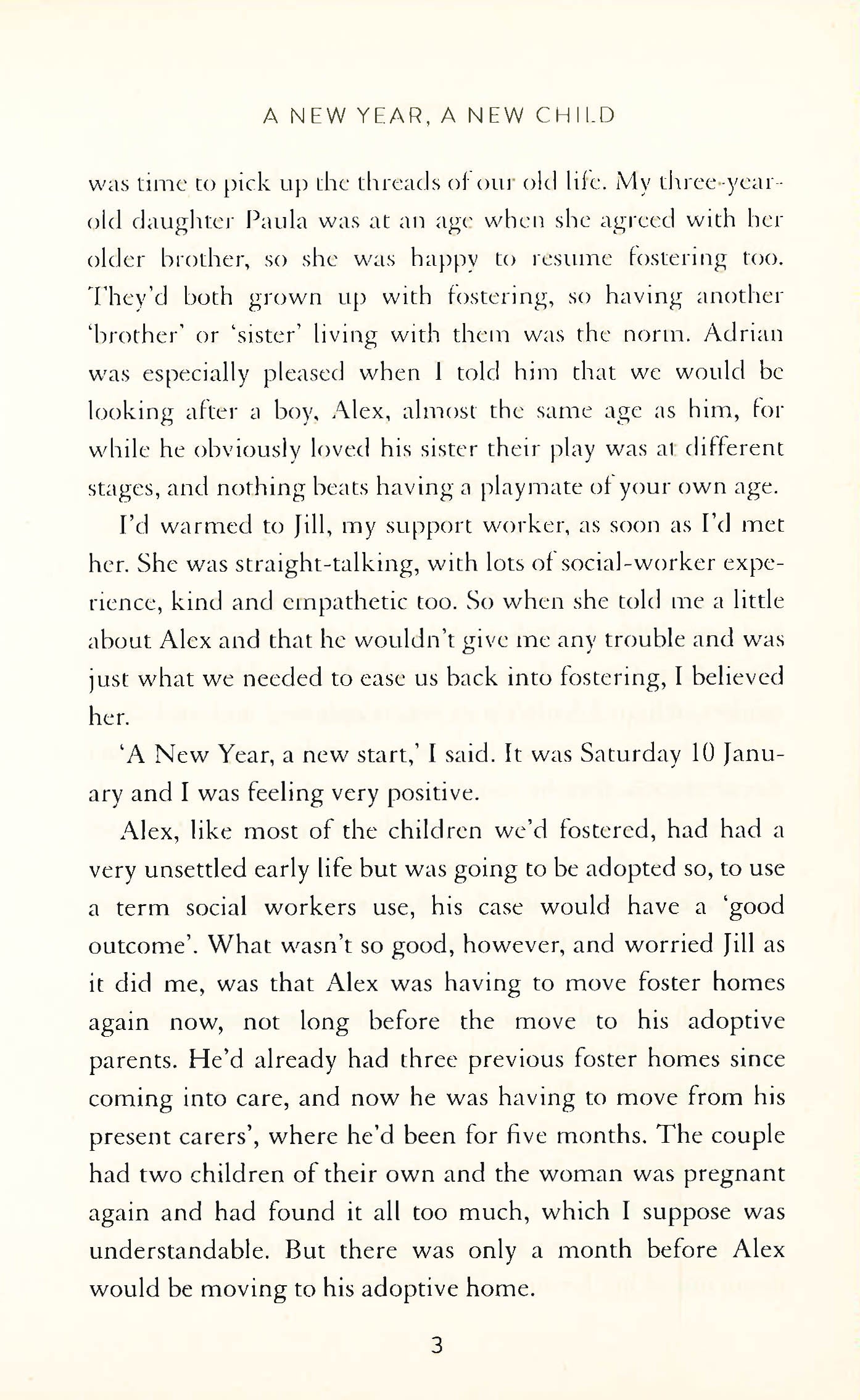 Born in a prison and removed from his drug-dependent mother, rejection is all that 7-year-old Alex knows. When Cathy is asked to foster little Alex, aged 7, her immediate reaction is: Why can't he stay with his present carers for the last month? He's already had many moves since coming into care as a toddler and he'll only be with her a short while before he goes to live with his permanent adoptive family. But the present carers are expecting a baby and the foster mother isn't coping, so Alex goes to live with Cathy. He settles easily and is very much looking forward to having a forever family of his own. The introductions and move to his adoptive family go well. But Alex is only with them for a week when problems begin. What happens next is both shocking and upsetting, and calls into question the whole adoption process.