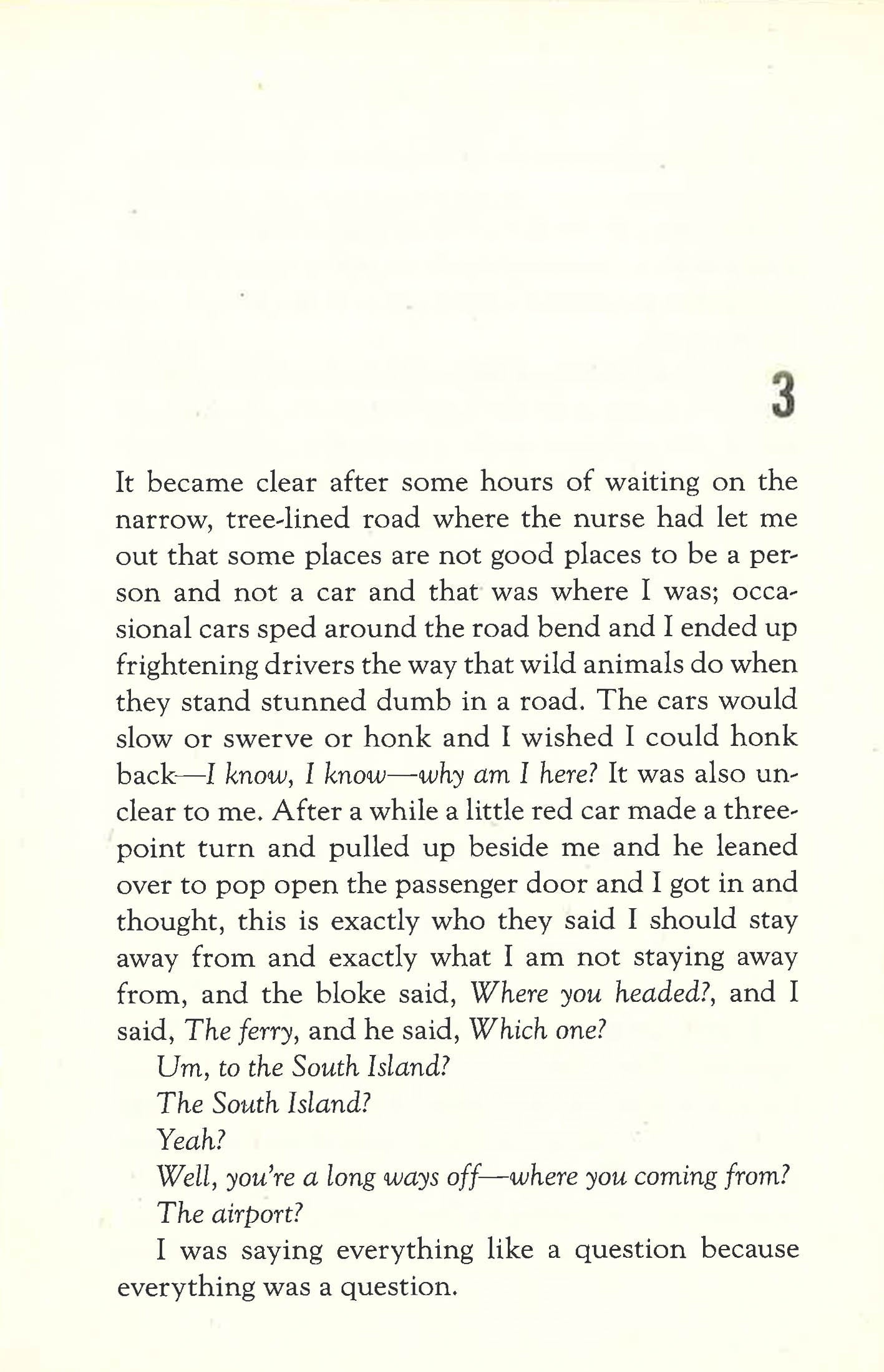 Without telling her family, Elyria takes a one-way flight to New Zealand, abruptly leaving her stable but unfulfilling life in Manhattan. As her husband scrambles to figure out what happened to her, Elyria hurtles into the unknown, testing fate by hitchhiking, tacitly being swept into the lives of strangers, and sleeping in fields, forests, and public parks.