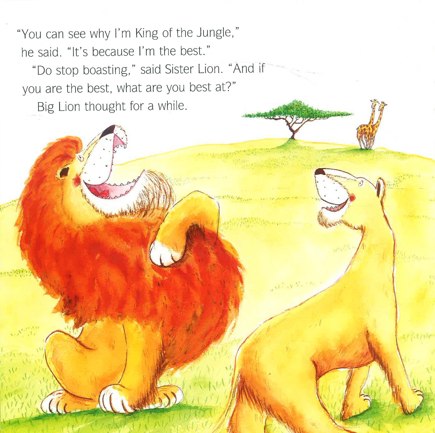"I'm the King of the Jungle because I'm the best!" says Pa Lion. But each time he shows off his skills, the other animals start to giggle. Don't they know that nobody laughs at a lion?