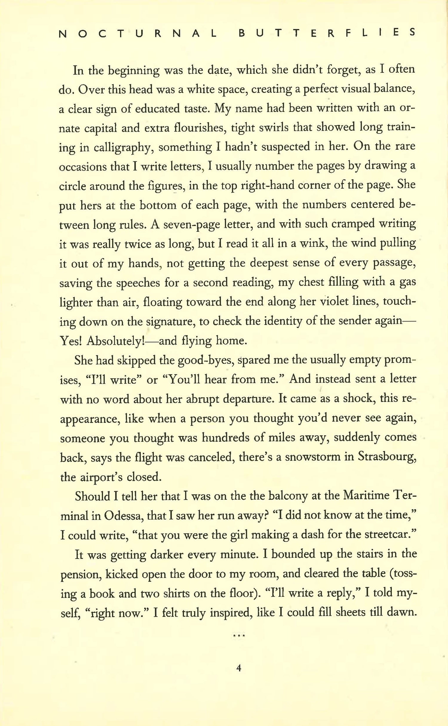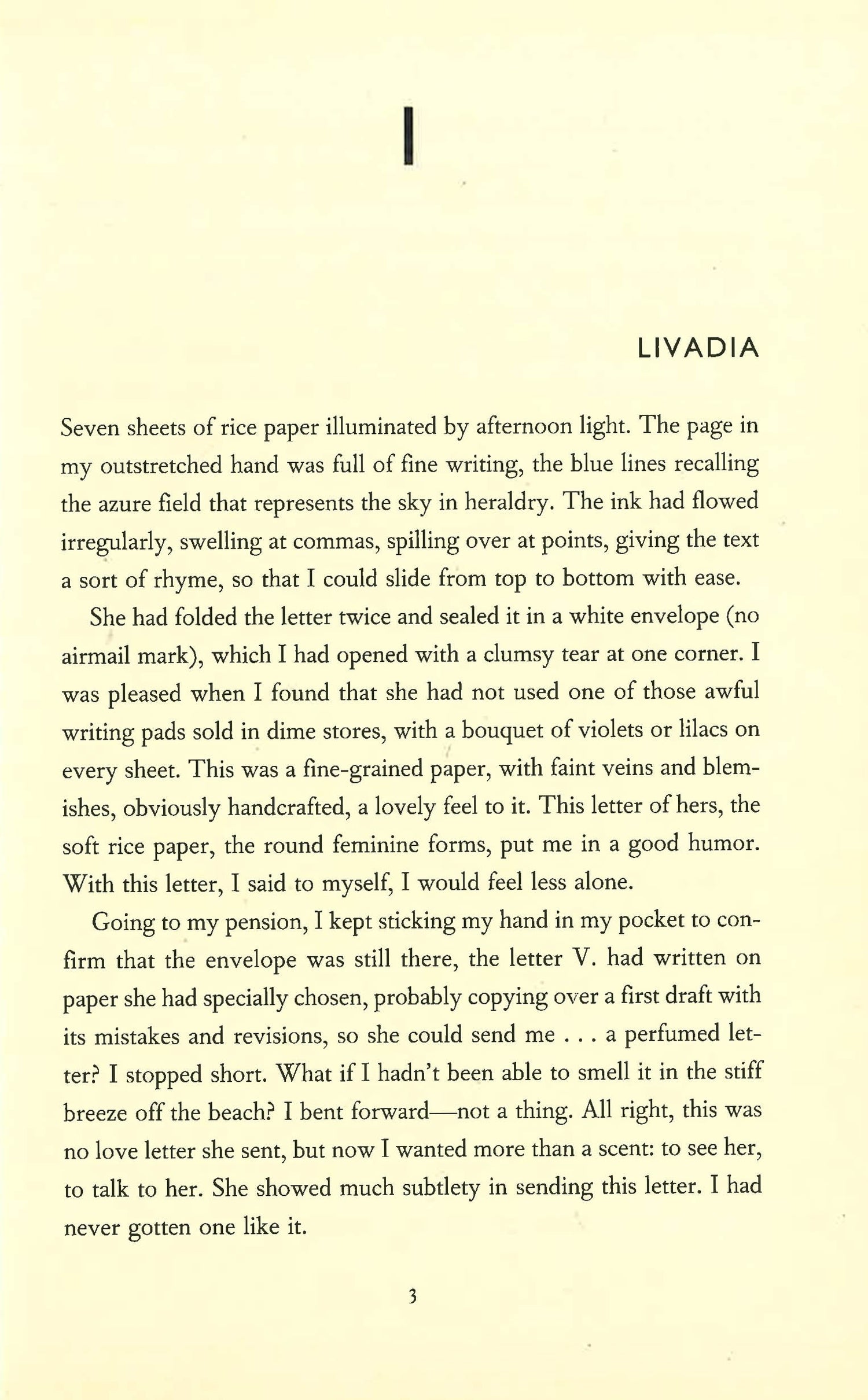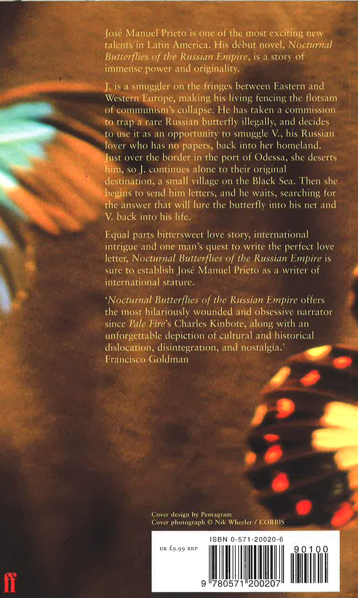 J. is a smuggler living on the fringes between Eastern and Western Europe, making his living fencing the flotsam of communism's collapse. He has taken a commission to illegally trap a rare Russian butterfly, and decides to use it as an opportunity to smuggle V., his Russian lover who has no papers, back into her homeland. Just over the border in the port of Odessa, she deserts him, so J. continues alone to their original destination, a small village on the Black Sea. Then she begins to send him letters, and he waits, searching for the answer that will lure the butterfly into his net and V. back into his life. Equal parts bittersweet love story, international intrigue, and one man's quest to write the perfect love letter, this book marks out Jose Manuel Prieto as one of the most exciting new Latin American novelists and a writer of international stature.